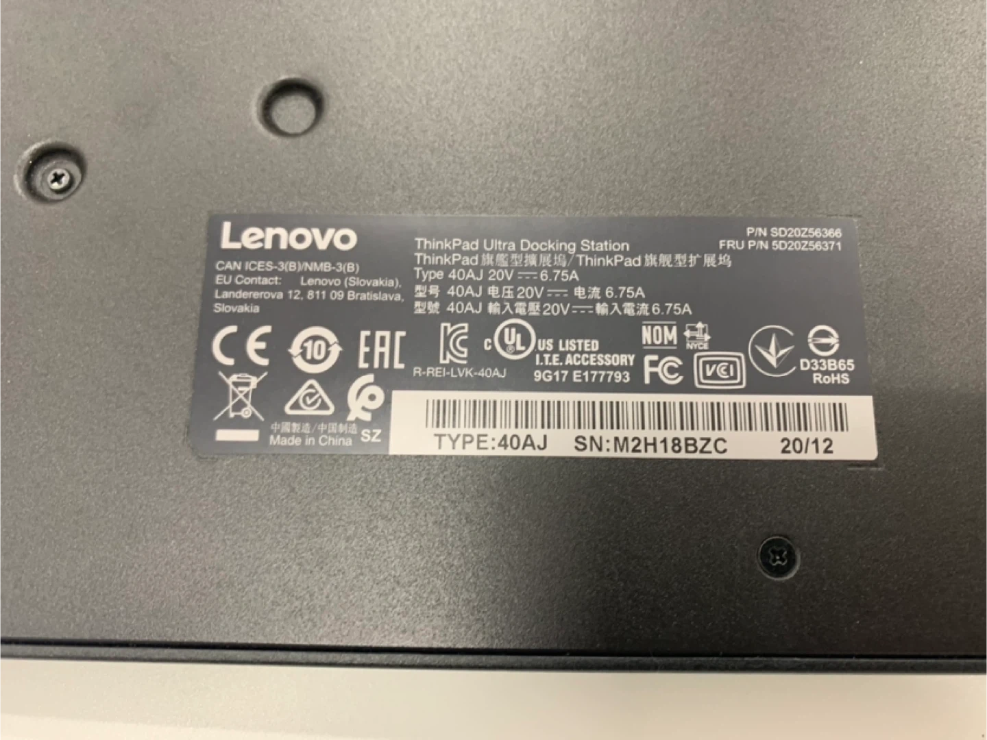 Lenovo ドッキングステーション 40AJ レノボのThinkPadドッキングステーションです 残念ながら、PCを手放した後なので動作確認が出来ていません。 - ブランド: Lenovo - モデル: Type 40AJ - 電源出力: - 接続タイプ: ACアダプター - 特記事項: ドッキングステーション用 [付属品] ・ACアダプター 鍵紛失しています。 【情報】 ブランド:レノボ 種類:ドッキングステーション 型番:40AJ 【状態】 使用感少なめ 中古品であることご了承ください ご覧いただきありがとうございます。5個以上まとめてご購入いただける方はさらにお値引き致します。 是非ご検討宜しくお願い致します。