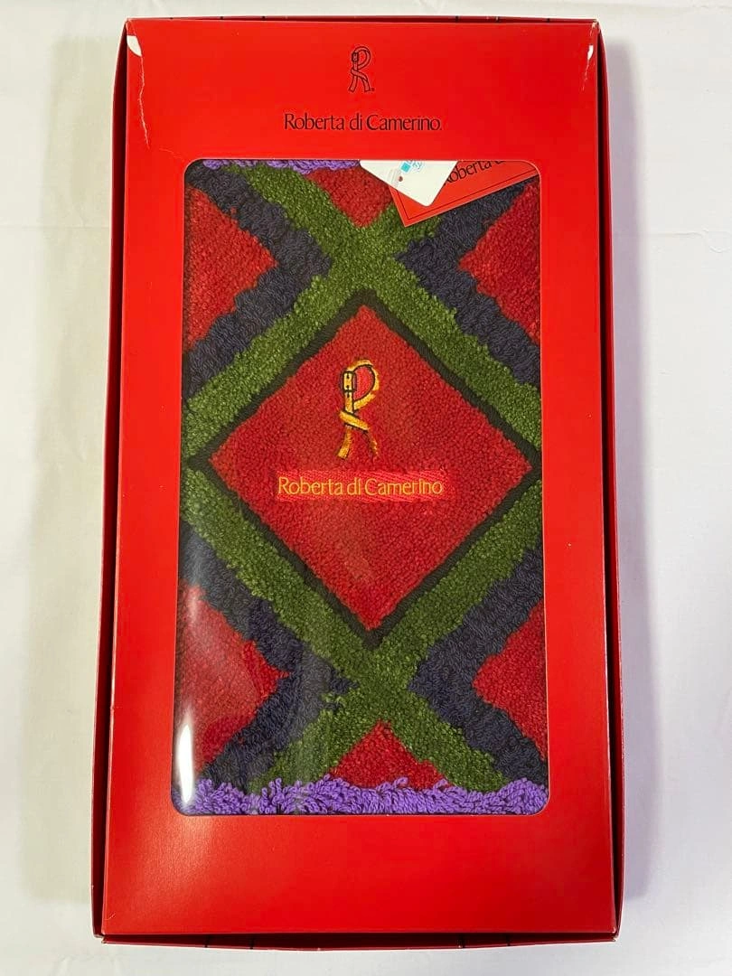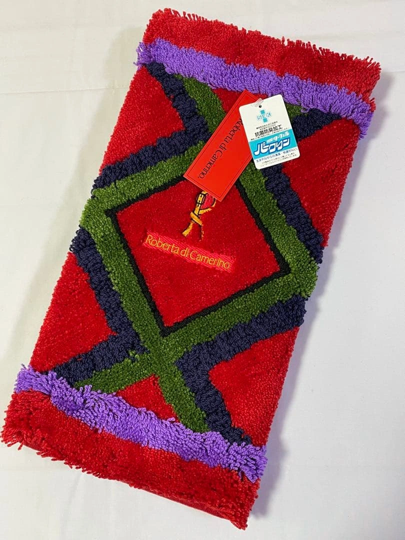 ロベルタカメリーノの玄関マット、バスマットです。 ロベルタらしい色使いが素敵なマットです。 サイズ/67×46cm 頂き物で、箱に入れたまま保管しておりました。 ご希望の方はお気軽にご連絡ください。