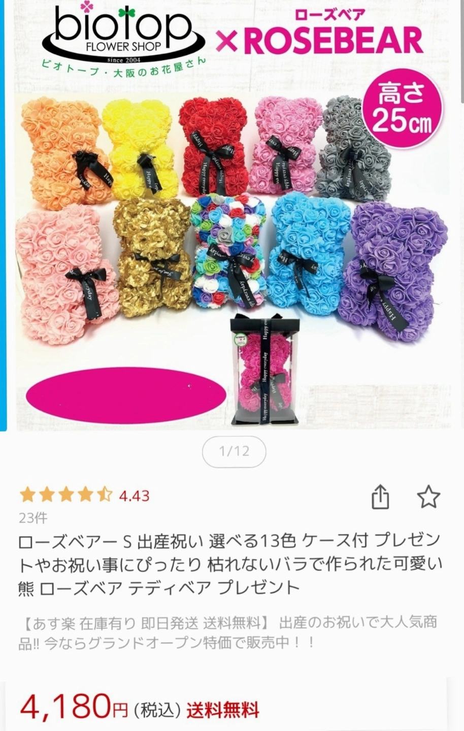 ローズベア ピンク テディベア バラ ぬいぐるみ