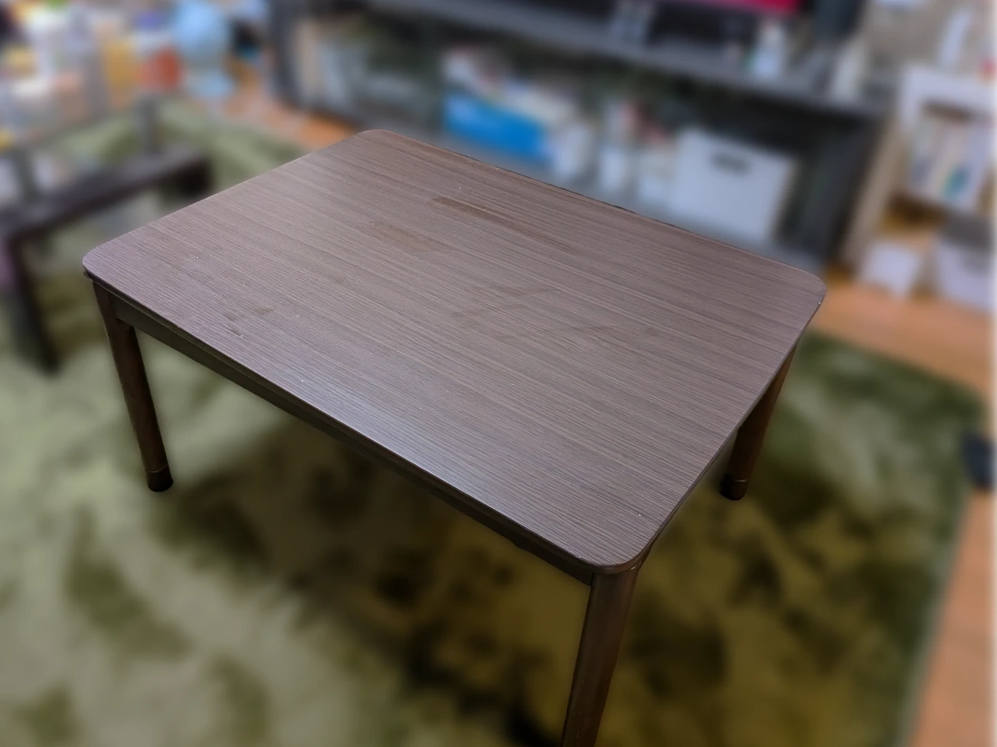 ローテーブルです。 高さは足の付け外しで36㌢にも調整可能です。(写真は足つき41㌢) 布団はお付けしてませんが、コタツにもなります。冬は重宝してました。 ローテーブルのない生活をしてみようと思ったので手放すことにしました。 ・色:ブラウン ・状態:使用感、傷あり ・NITORIで5年前に購入 中古品であることをご了承ください。 車を持っていないため、自宅まで取りにきていただけると幸いです。