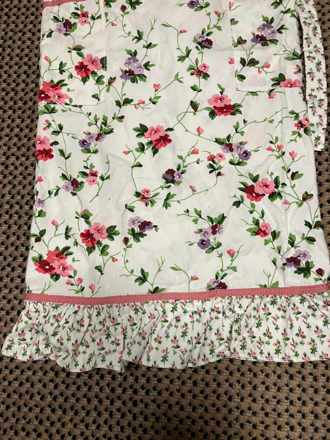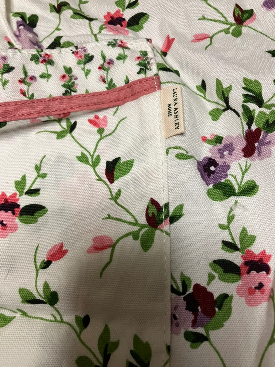 ローラアシュレイのエプロンです。 一回だけ舞台衣装として使用しました。 料理、家事には使ってないので、新品同様です。 出品にあたり洗濯しました。 ・花柄デザイン ・ポケット2つ付き ・フリル付き ・綿100%