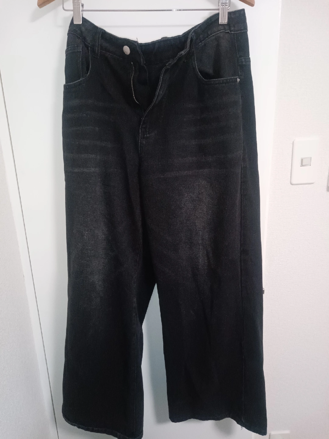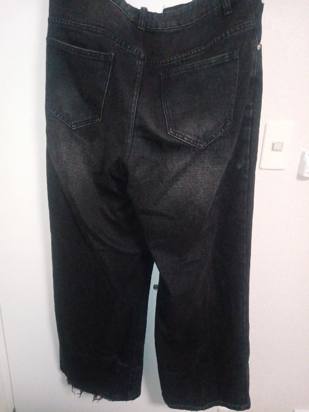 黒デニムパンツです。 ・カラー:ブラック ・サイズ:JP M ・使用感あり ・裾にダメージはいっています 測るものがないためサイト参考サイズ: ウエスト :82 ヒップサイズ:108 太もも:69,8 股下:73.6 正確でない可能性がありますが、ご理解ください。 最後に中古品であることご了承ください