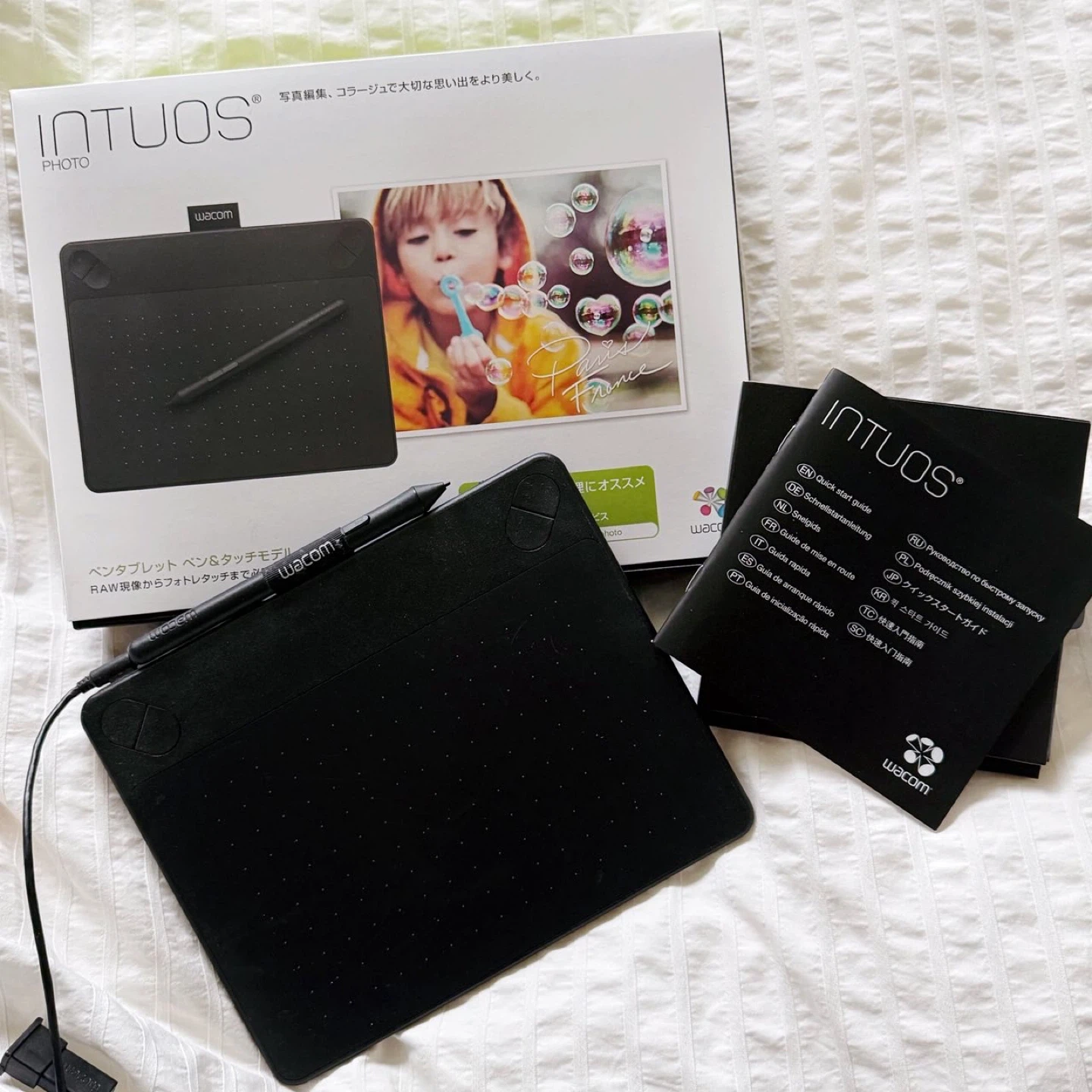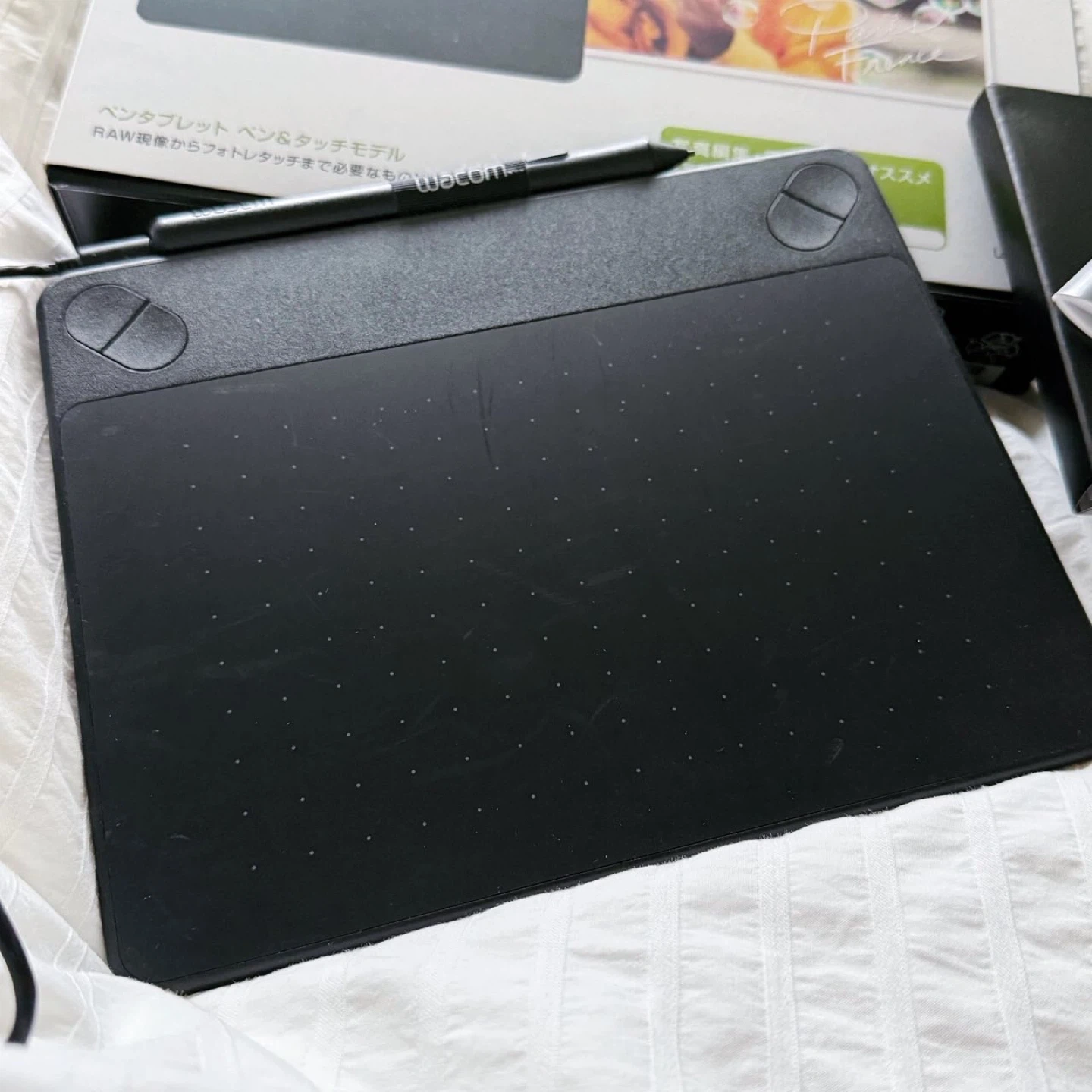ワコム ペンタブレット CTH-490/K2(動作確認済) ー出品内容ー ・ペンタブレット 本体 ・タッチペン ・クイックスタートガイド ・保証書(記述箇所は空欄) ・タブレットドライバCD 数年使用しましたが、使用頻度は半年に一度くらいで、 それほど多くはありませんでした。 表面の状態については画像2、3枚目でご確認いただければと思います。
