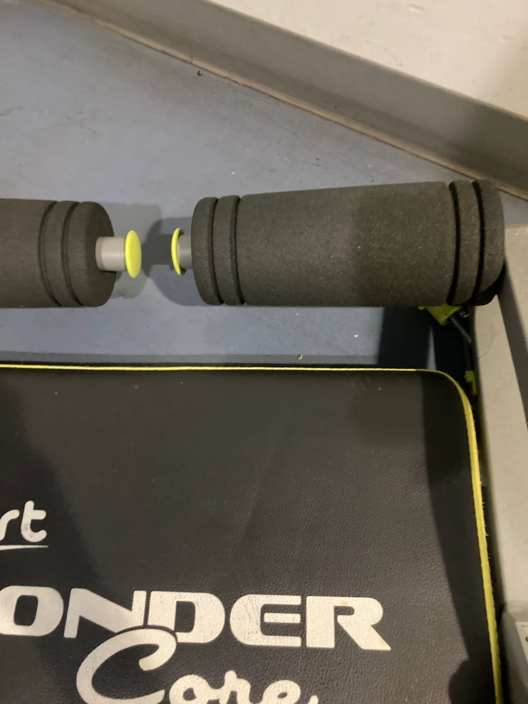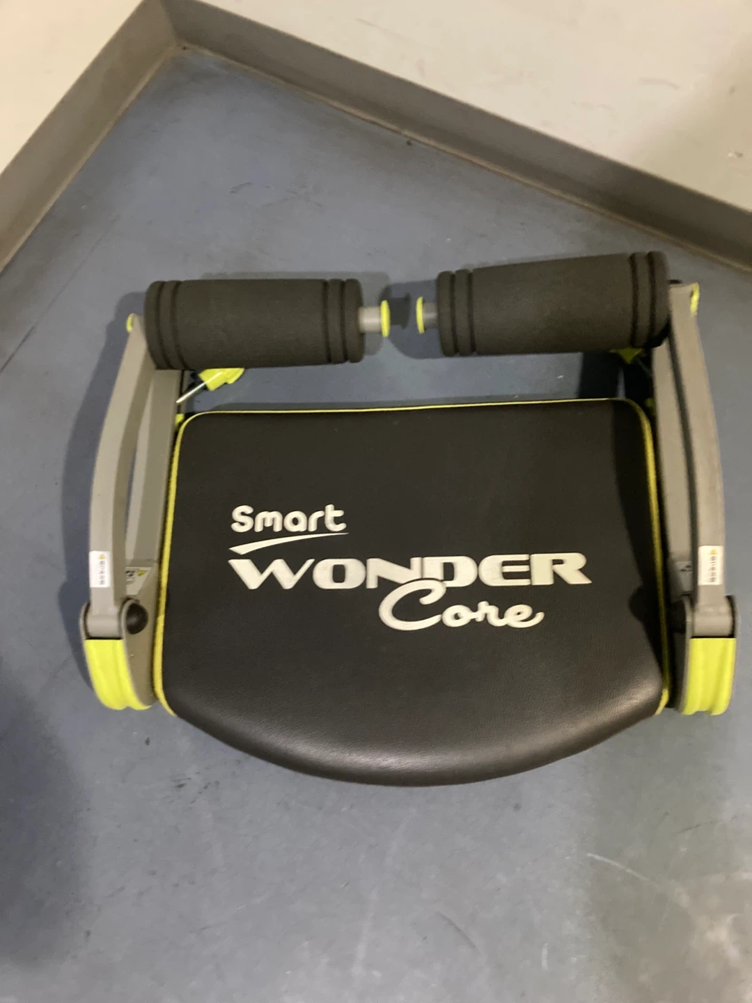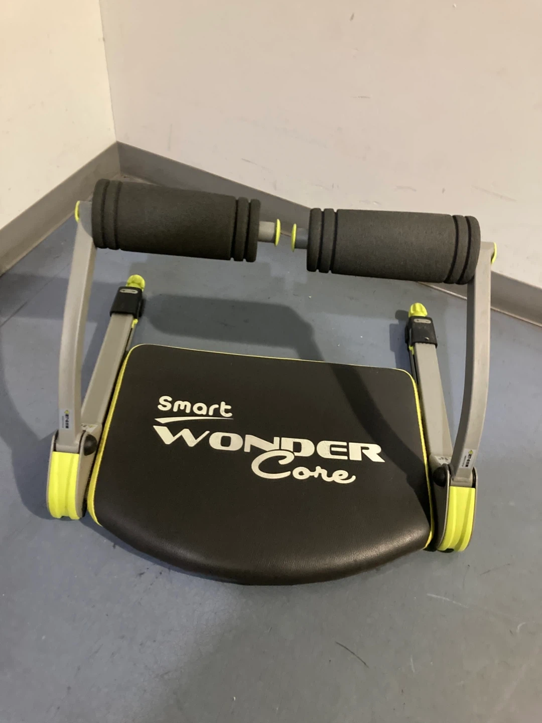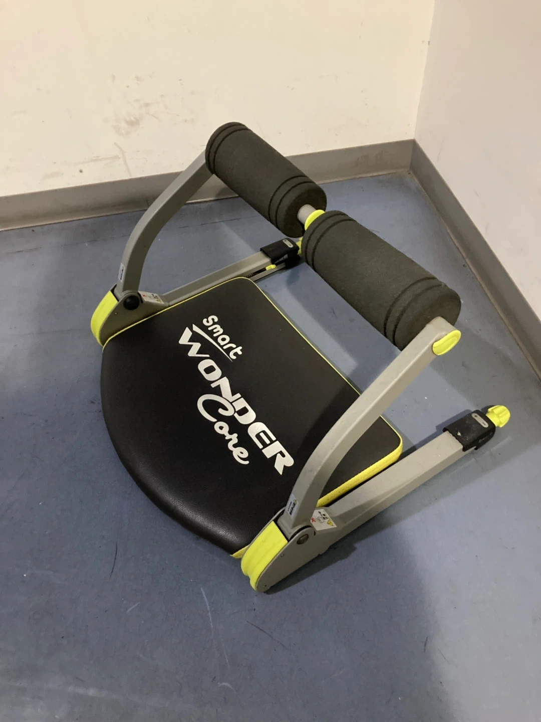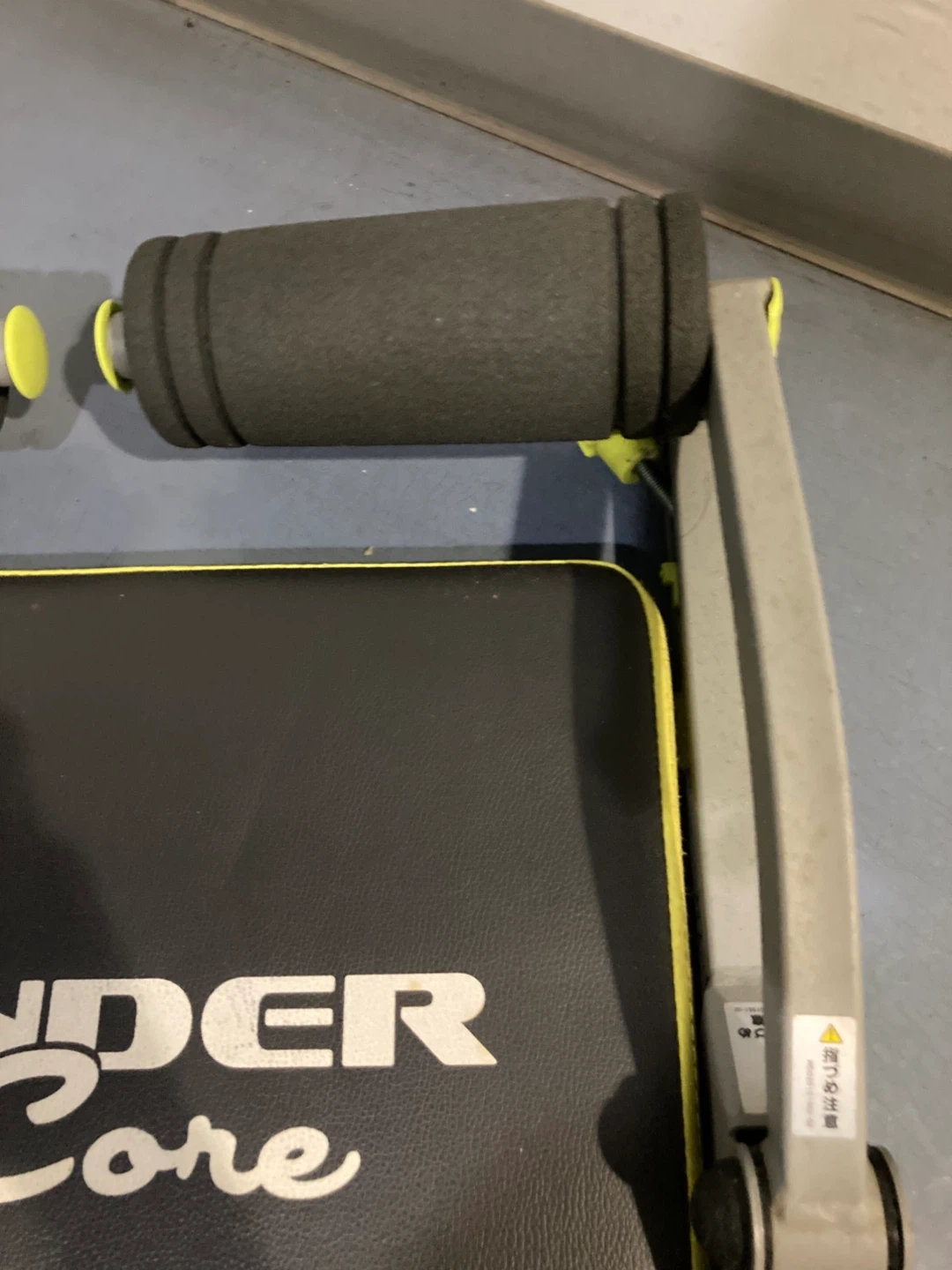ショップジャパンで購入した ワンダーコアです。 定価10000円程の商品ですので、大変お得です。 体を倒すだけで腹筋を鍛えられる腹筋マシーン・ワンダーコアです。 クッション1枚分のサイズだから省スペースで収納も便利、1番のオススメは忙しい方、面倒くさがりな方です。ひとり暮らしの方にもオススメです。ご自宅で好きな動画を見たり、ゲームをしたりしながら腹筋を鍛えることが出来てズボラな私でも見事に腹筋を鍛えることが出来ました。今ではもっともっと他の部位も嫌えたくなりジムに通うことにしたので、使わなくてなり誰か腹筋を鍛えたいと思っているけどジムに通うのはちょっとと言う方に是非使っていただきたいと思い出品致します。 背中や首に負担がかかるツラ〜い腹筋運動はもう卒業。 背もたれの反発力が体を倒す時も起こす時も腹筋を刺激し、お腹周りを効率的に引き締めます。 しかも本体に内蔵されたスプリングが運動をサポートしてくれるから、初めての方や年配の方でも安心です。 使っていたので汚れ傷あります。表側は比較的キレイですが裏面の不織布の部分が破れています。不織布は薄いのですぐに破れてしまいますが、全部取ってしまっても使用に問題はありません。