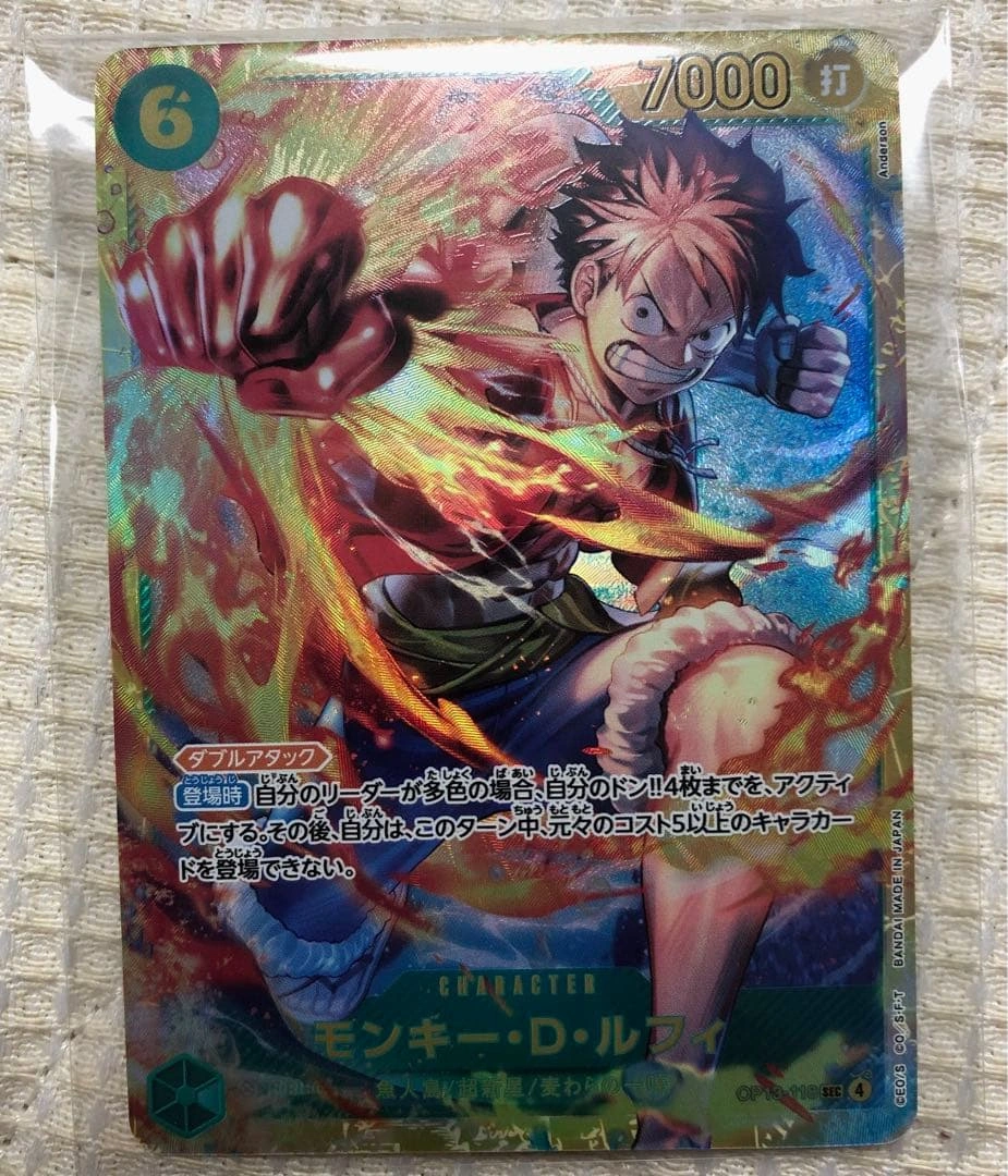 ご覧いただきありがとうございます。 モンキー・D・ルフィのダブルアタック能力を持つ、パワー7000のトレーディングカードです。 - キャラクター名: モンキー・D・ルフィ - コスト: 6 - パワー: 7000 - 攻撃力: 打 - 特殊能力: ダブルアタック パックから開封後、すぐにスリーブに入れて丁寧に保管しております。 状態はとても良く、傷・反りなどは見当たりません。(写真でご確認ください) 商品詳細 •シリーズ:OP13 •レアリティ:SEC •入手後すぐスリーブ保管 •コレクションにおすすめ 追加の写真希望があればお気軽にコメントください #ワンピカード #ONEPIECEカード #OPTCG #トレカ #メルカリ出品 #SNKR出品 ご希望の方はお気軽にご連絡ください。