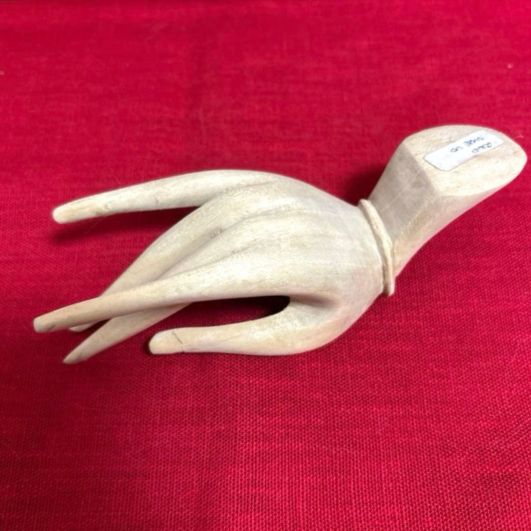 ご覧頂きありがとうございます! 木材で作られた女性の手のオブジェです。 家族が昔、海外で購入し長期自宅保管しておりました。 写真にありますように若干の汚れが見られます。又、購入時に貼られたシールもそのまま剥がさずに発送させて頂きます(写真4枚目) 全てご了承頂ける方でお願い致します。 ✳︎サイズ 長さ 約12.7㎝ 幅 約3.5㎝ キャンセル、返品、商品お受け取り後のクレームなどはお受け出来ませんので、ご了承頂けるようお願い致します。 ご不明点はお気軽にお問い合わせください。