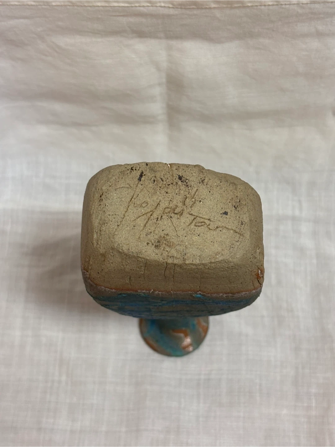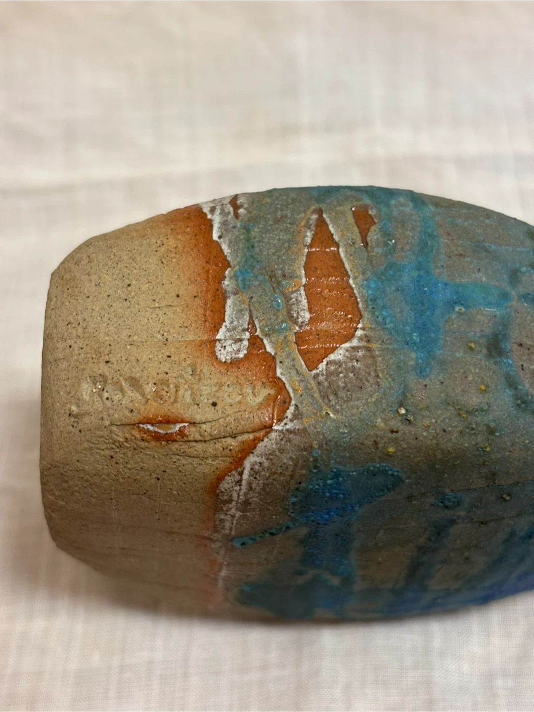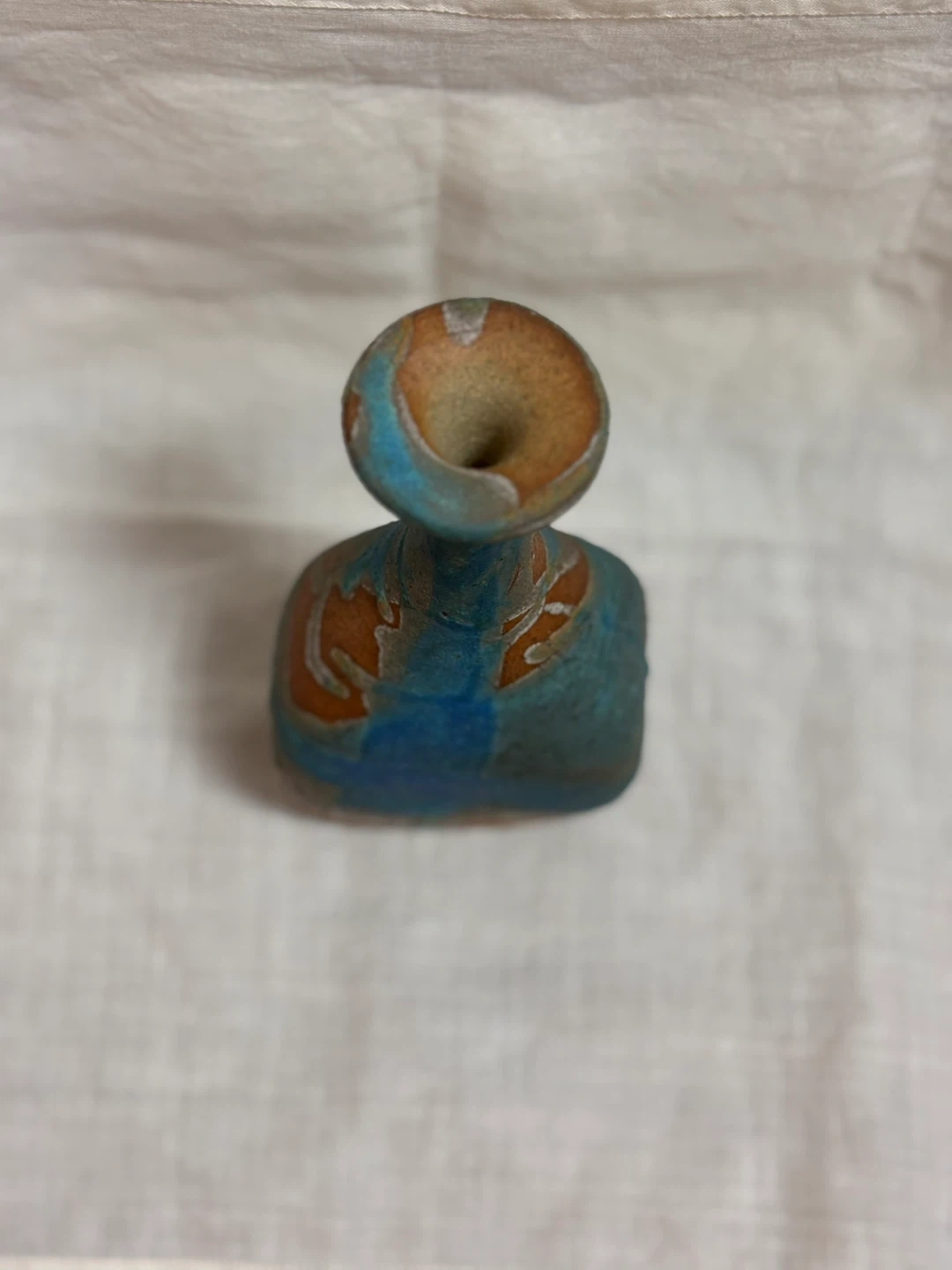 ご覧頂きましてありがとうございます! サインと刻印のある一点ものの陶芸作品です。 青釉が流れるように掛けられており、光の加減で色の表情が変わります。 土の質感と釉薬のコントラストがとても綺麗な作品で、手仕事ならではの温かみを感じます。 一輪挿しとしてもお使いいただけますが、オブジェとしてそのまま飾っても映えるデザインです。 長期自宅保管のものです。 目立つ傷や汚れは見当たりませんが、ハンドメイド・ヴィンテージ作品にご理解のある方のみお願いいたします。 ✴︎サイズ 口径 約4.3㎝ 高さ 約17㎝ 幅 約8㎝ キャンセル、返品、商品お受け取り後のクレームなどはお受け出来ませんので、ご了承頂けるようお願い致します。 #ミニ フラワーベース #アンティーク花瓶 #一輪挿し #インテリア #オブジェ #陶芸作品 #Art Pottery #作家もの #青釉 #花器 #陶器のある暮らし #ヴィンテージ花瓶 #工芸品 #手仕事のうつわ