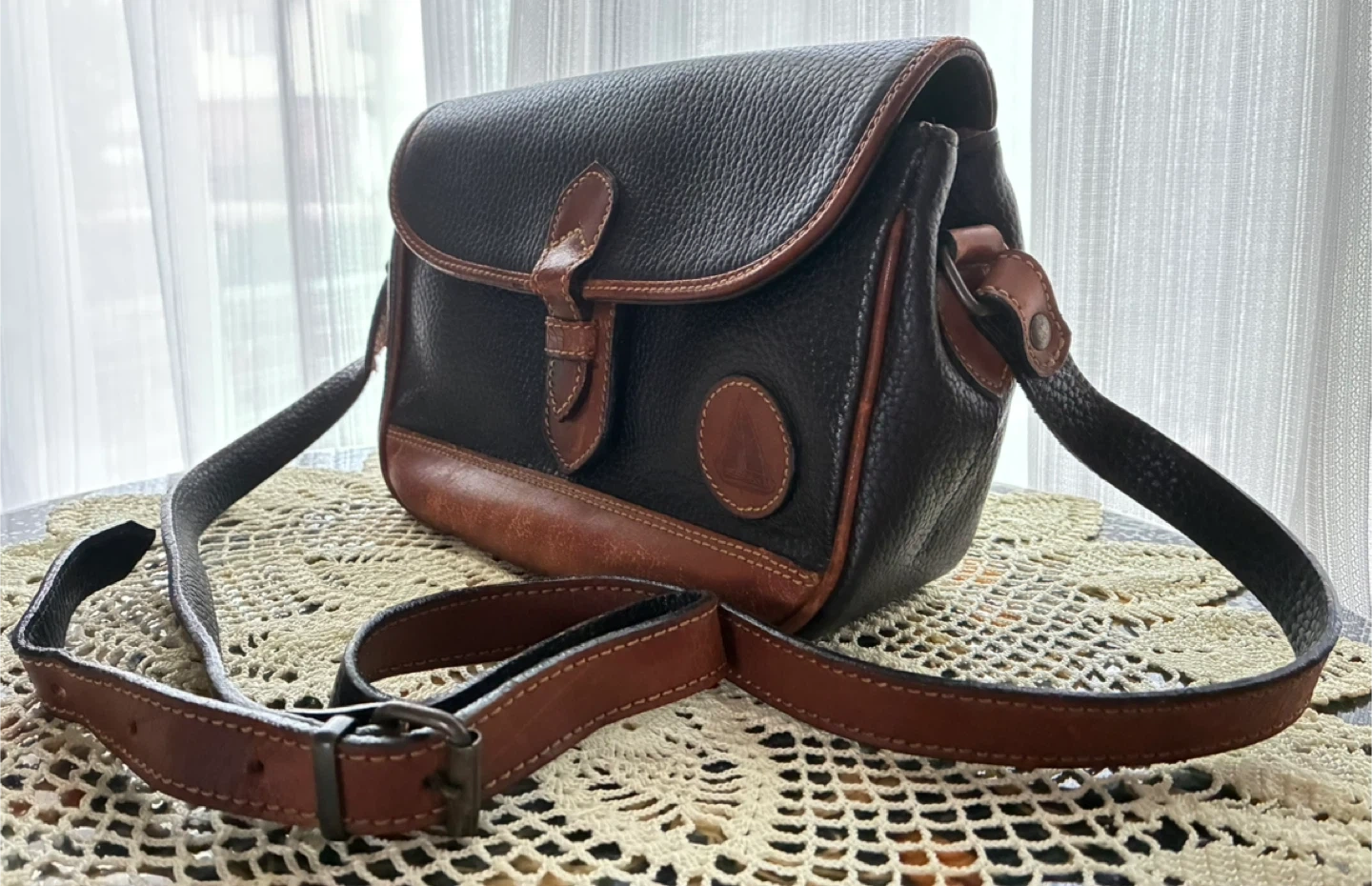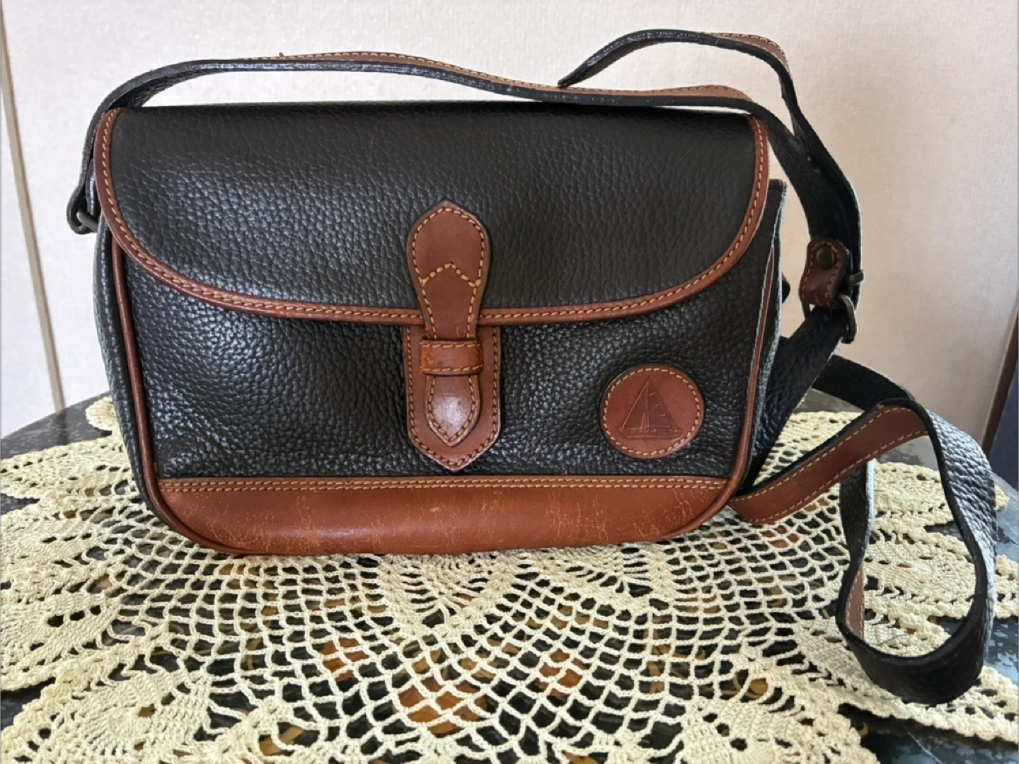ヴィンテージ Dooney & Bourke USA製 AWL 帆船ロゴ付き レザーショルダーバッグ 【商品詳細】 ブランド:Dooney & Bourke(ドゥーニー&バーク) 製造国:USA サイズ:約 縦17cm × 横25cm × 奥行10cm カラー:ブラック × ブラウン 素材:オールウェザー・レザー(防水レザー) 開閉:フラップ&レザーストラップ式 内ポケット:あり 状態:ヴィンテージ品につき、革のスレ・金具のくすみなど若干ありますが、 全体的にしっかりした良好なコンディション 内部も劣化等なく、綺麗な状態です!! 販売価格¥28,000〜¥53,000程 価格交渉および受渡し場所等、お気軽にお問い合わせください♪ どうぞ宜しくお願いいたします。