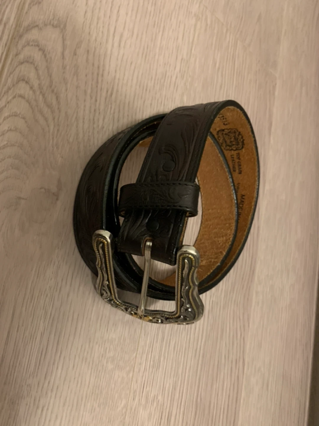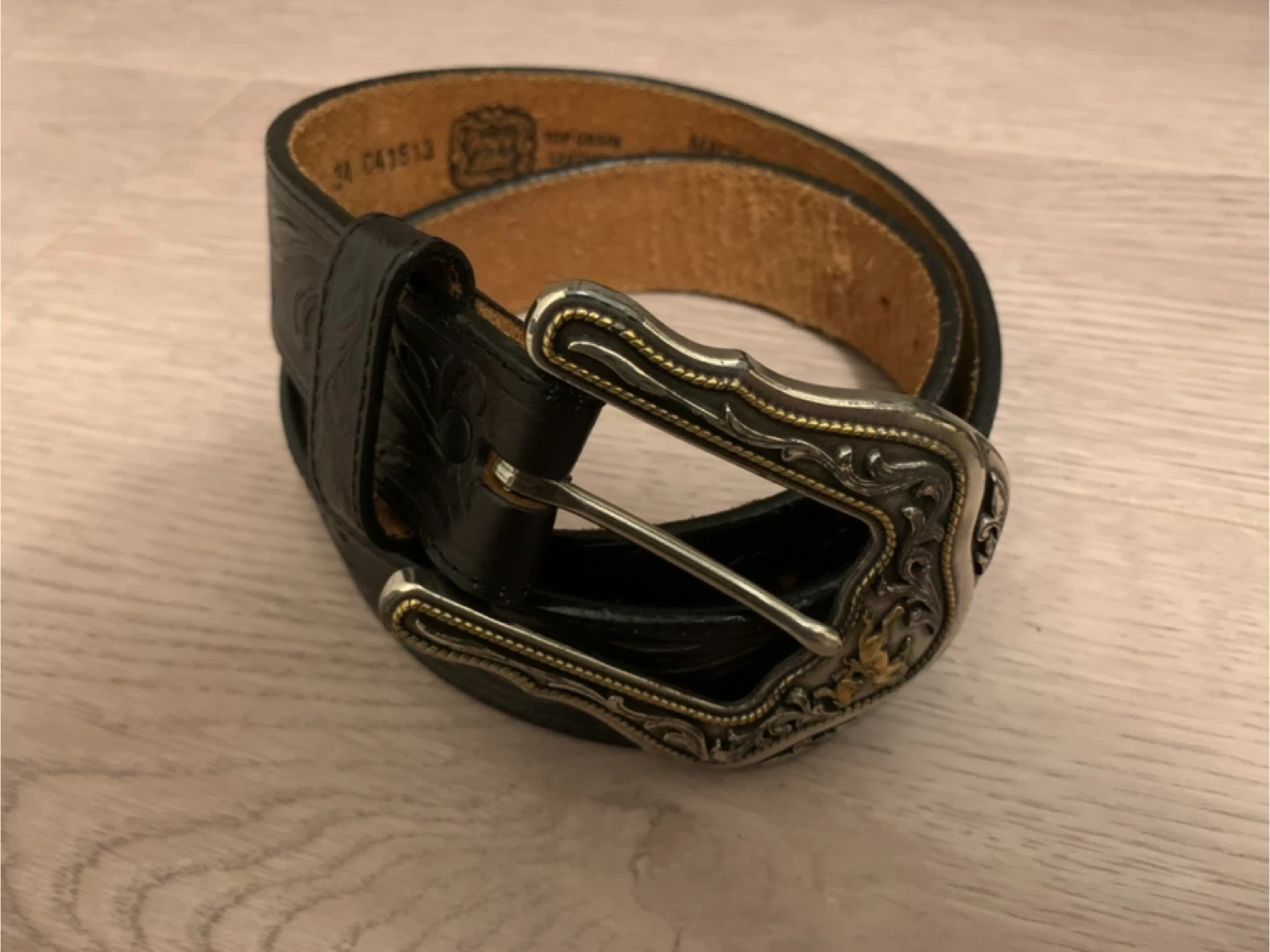 ヴィンテージのレザーベルトです ・ブランド:不明(TOP GRAIN LEATHERのロゴあり) ・カラー:ブラック ・素材:レザー ・サイズ:34インチ ・型番:C41513 ・状態:使用感はありますが、目立つキズはありません 中古品であることご了承ください ご覧いただきありがとうございます。5個以上まとめてご購入いただける方はさらにお値引き致します。 是非ご検討宜しくお願い致します。
