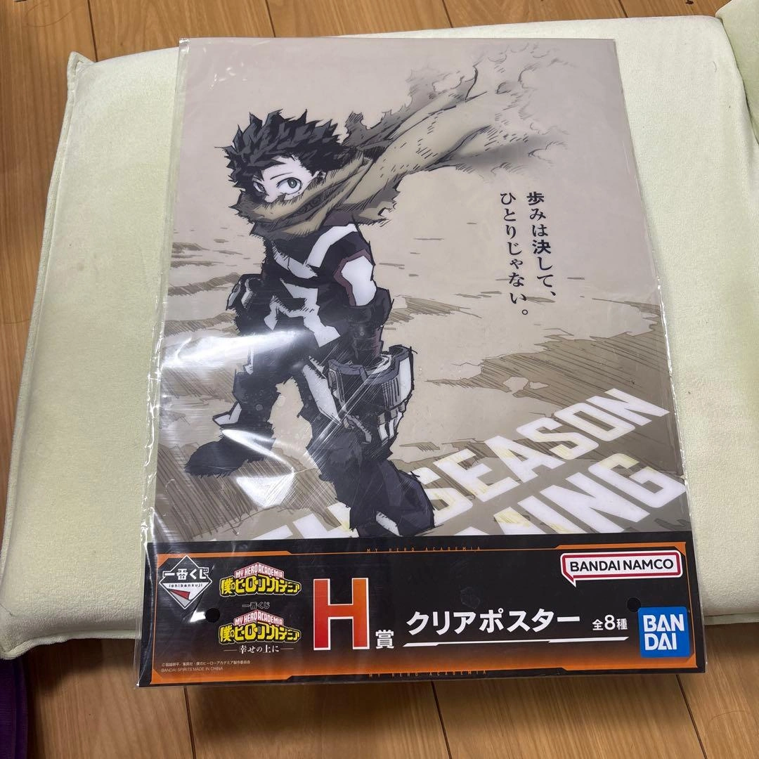 H賞 クリアポスター 新品未使用品です。 梱包は、U字に折り曲げてダンボールに入れます。参考に別デザインですが梱包写真アップしています。 よろしくお願いします(•ᵕᴗᵕ•) 一番くじ 僕のヒーローアカデミア 幸せの上に ご希望の方はお気軽にご連絡ください。