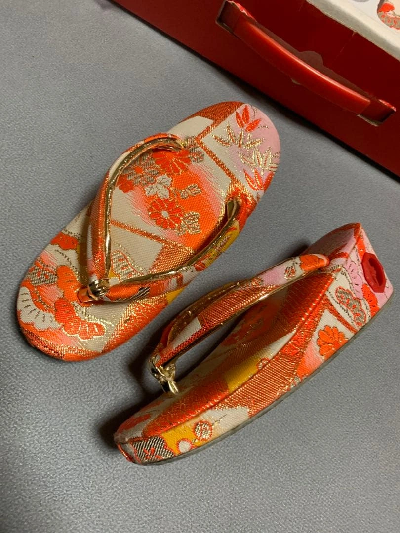 最終画像のようにつま先にやや傷があるのと、センスの付け根にヒビが入っているので、お安く出品します。 草履約17.5センチ 高さ約4.5センチ 天気が悪いときのスペアにも