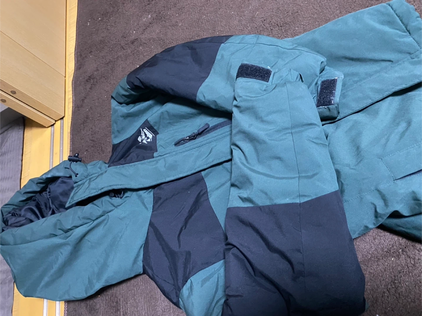 あたたかさ不明なアウターです。 ・色:緑、黒 ・状態:使用感あり 中古品であることをご了承ください。