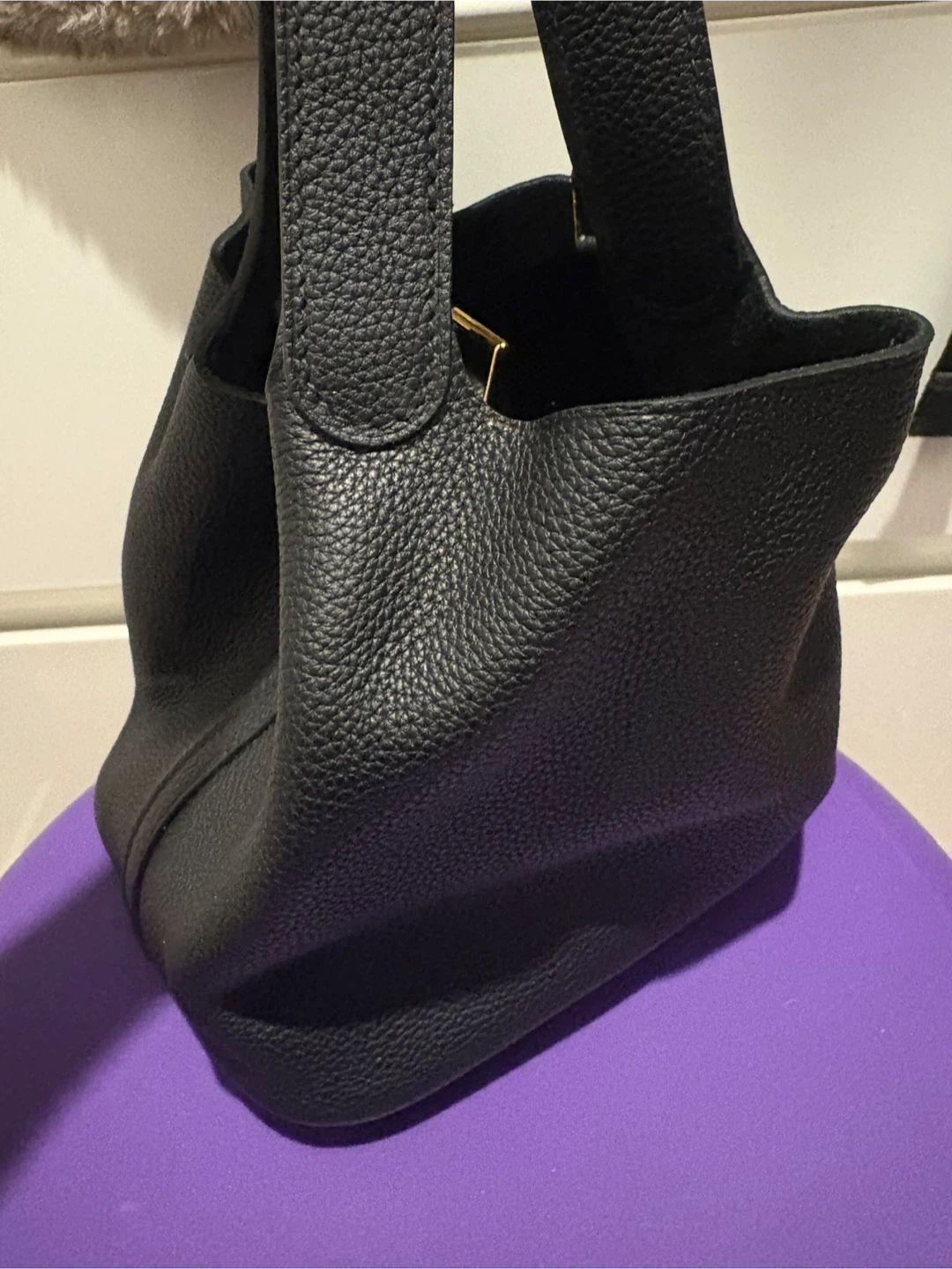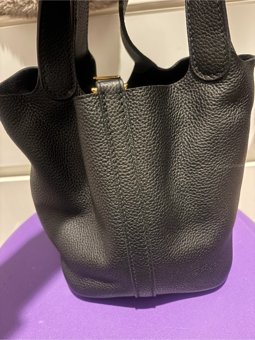エルメスのハンドバッグです。 並行輸入品にご理解のある方のみのお取引きになります。 ・ブランド:エルメス ・色:ブラック ・素材:レザー ・状態:使用感少なめ サイズ横約18センチ    縦約18センチ とても使いやすいピコタンです! 日常使いにいかがでしょうか? ご不明点があればお気軽にお尋ねください。