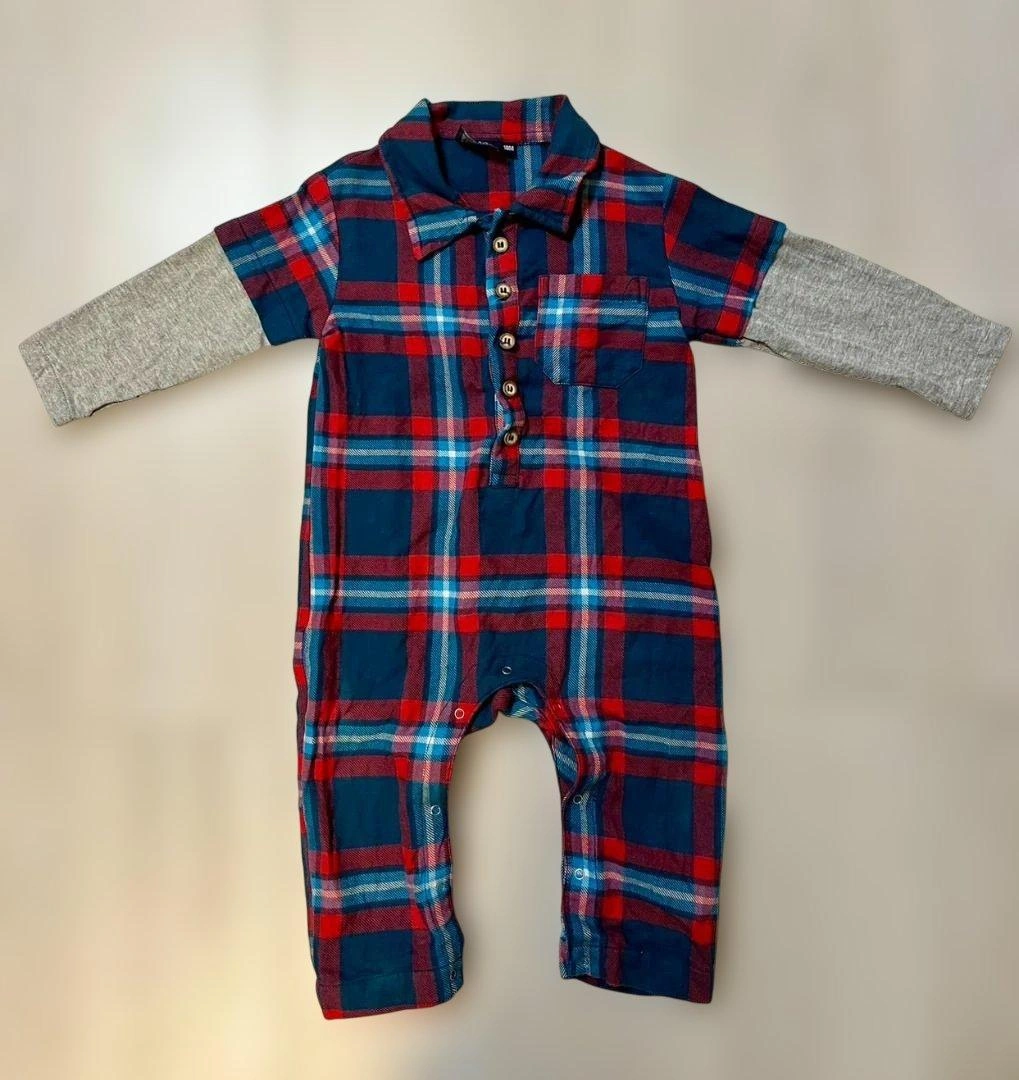 【中古・美品】チェック柄重ね着風ロンパース*18M