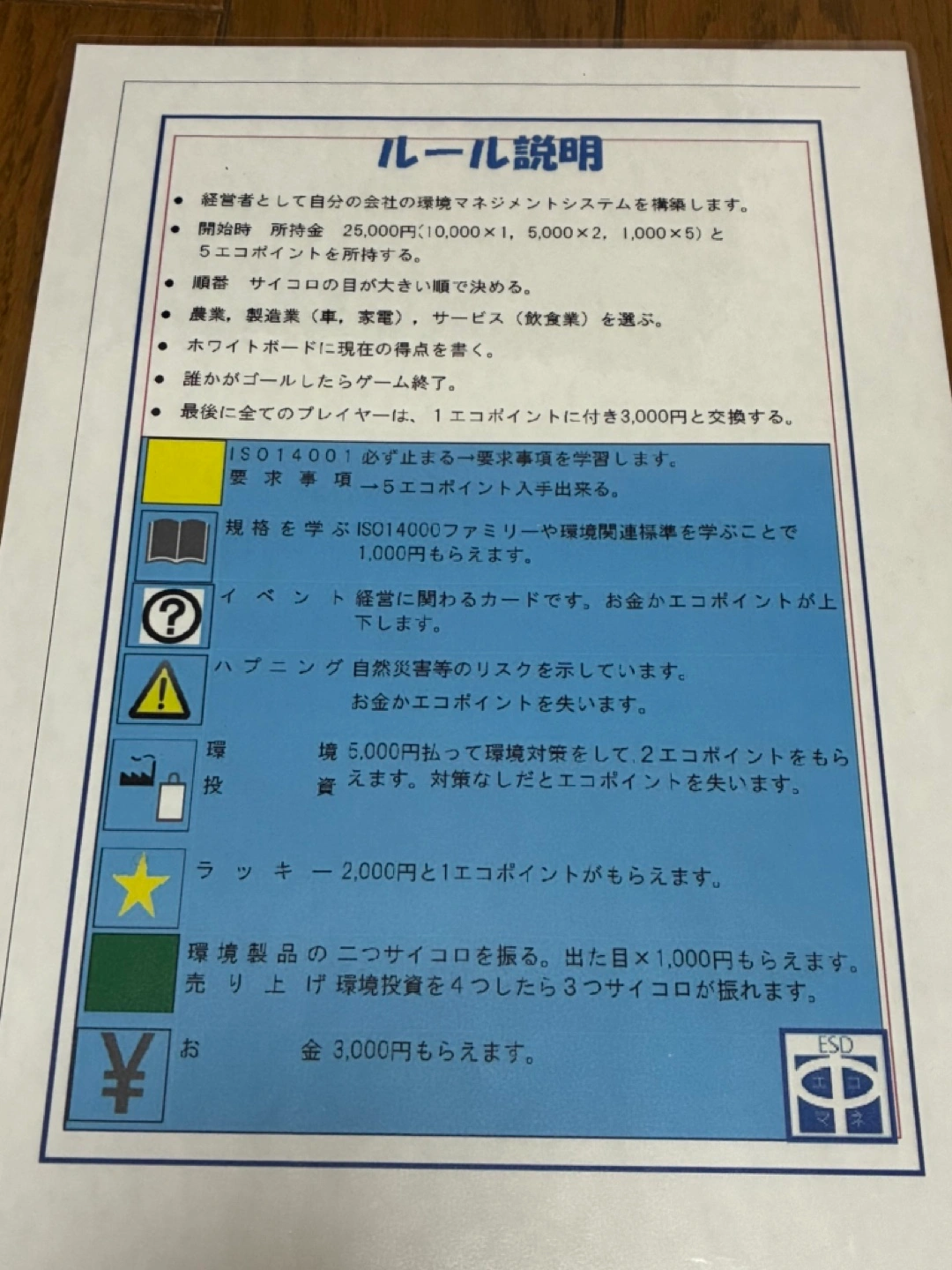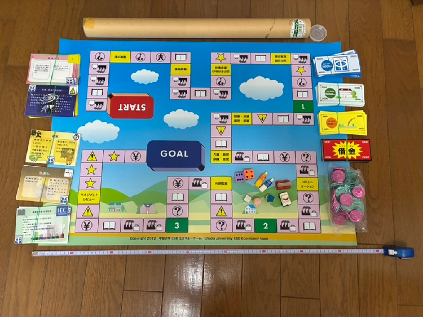 環境ボートゲームです。 もしもあなたが社長になった場合に、さまざまな環境変化で、会社の経営をどうするか進めていきます。 会社も環境に優しい経営が必要と考えなければならない時代になり少し勉強になるかもしれません。 土日祝日なら都合つけられます。 駅は京王南大沢駅か横浜線橋本駅なら対応できます。 ご興味ありましたら、連絡お願いします。