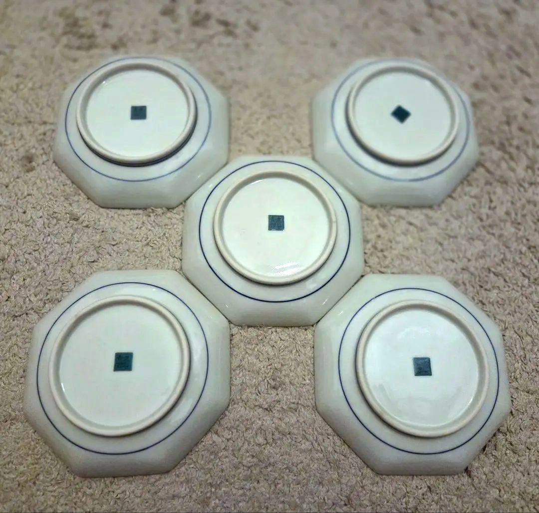九谷焼 青郊 唐子 13cm 5枚 10.5cm 4枚 計9枚のセットで販売します。 新品未使用ですが、長らく自宅で保管されていました。箱に汚れ等が見られますが、お皿の保護のためこのままお渡し予定です。お気になさらない方にお譲り出来れば幸いです。 大きさごとに分けて販売もしているため、ご購入の際は念の為コメントにてお知らせいただけますと幸いです。 - 数量: 5枚+4枚 9枚セット - デザイン: 八角形の皿 - 素材: 陶磁器 - 箱: オリジナルの箱付き 取り皿 豆皿 小皿 青郊窯 唐子 九谷焼 ご覧いただきありがとうございます。