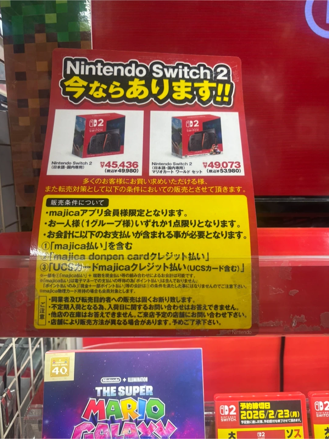 ホーム新宿区のフリマ新宿区の本・ゲーム・エンタメ歌舞伎町の本・ゲーム・エンタメ今日12/19購入!Switch2マリオカート同梱版デデンネ歌舞伎町50.8℃あたたかさ今日12/19購入!Switch2マリオカート同梱版本・ゲーム・エンタメ · 54,000円ドン・キホーテで先ほど購入しました。 レシートや保証レシートあります。 開封してい ないので動作チェックはしていません。 ご了承下さい。商品の状態新品・未使用チャット1·お気に入り2·閲覧数57アプリで問合せ/購入申請取引はアプリでのみ可能です。ダウンロードしてご利用ください。デデンネさんの出品すべて見る4K有機ELテレビ VIERA TH-65JZ2000100,000円歌舞伎町今日12/19購入!Switch2マリオカート同梱版54,000円歌舞伎町PSポータル22,000円歌舞伎町ハンガーラック譲ります(0円)歌舞伎町鬼滅の刃 冨岡義勇の日輪刀譲ります(0円)歌舞伎町《JaVaジャバ コラボ》春のマストアイテム。ゆるっと穿きこなす。サイド 切り替え 裏使い オーバーサイズ スウェットパンツ2枚4,000円歌舞伎町人気商品