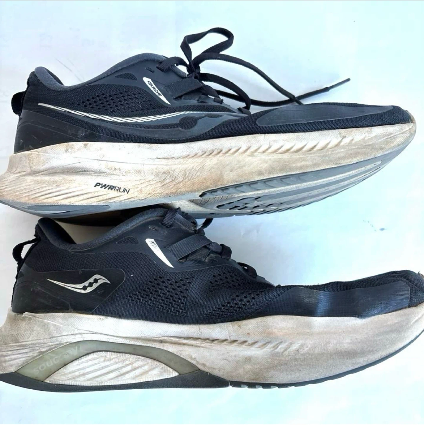 ご覧いただきありがとうございます。 saucony サッカニー ランニングシューズだと思いますが、 普段履きもしていました。 【情報】 ブランド:サッカニー 型番:S20684-05 サイズ:USA 8.5、UK 7.5、EUR 42、26.5cm 色:黒 【状態】 使用感、汚れあり ソールの減りあり お試し用に…とりあえず、という方… 気にならない方がいらっしゃったらどうぞ。 現状のままお渡しします。 中古品ということをご理解いただいた上で、 お手続きをお願い致します。 気になる方はご遠慮ください。 メンズ サッカニー ランニング