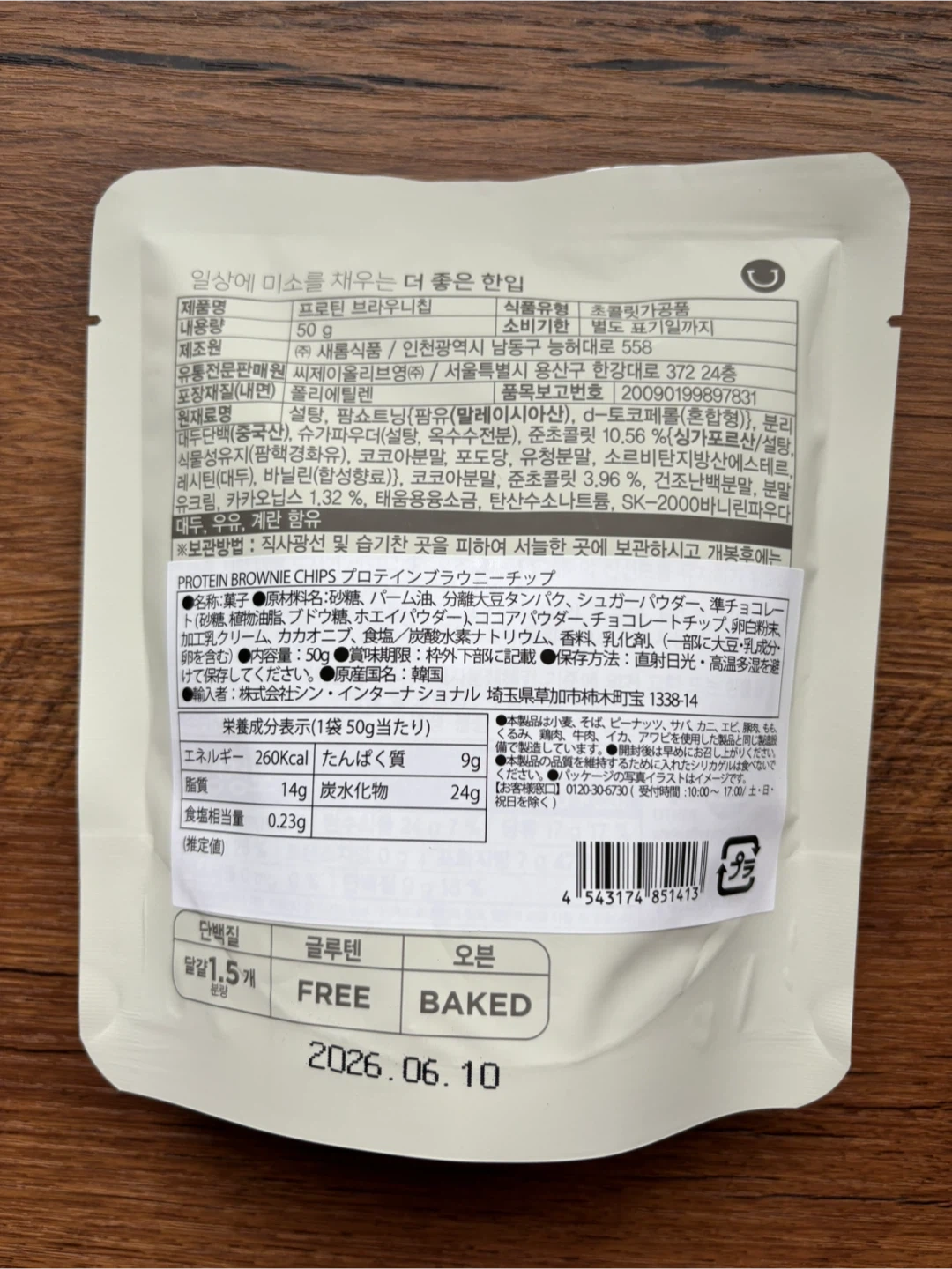 プロテインブラウニーチップ 賞味期限 2026.06.10 新品未開封品です。 無料商品は、他商品ご購入頂いた方 お一人様1点でお願い致します☺︎