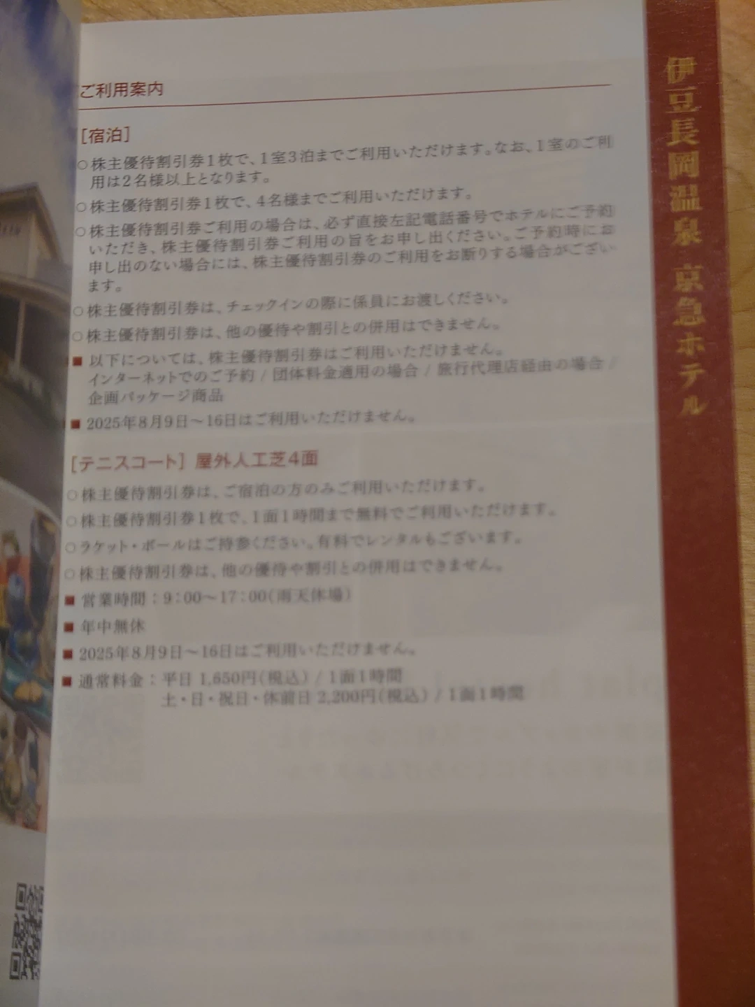 ホーム横 浜市 中区のフリマ横浜市 中区のスポーツ・レジャー山下町のスポーツ・レジャー伊豆長岡温泉 京急ホテル 株主優待割引券 5枚セットペルシカ山下町40.6℃あたたかさ伊豆長岡温泉 京急ホテル 株主優待割引券 5枚セットスポーツ・レジャー · 100円伊豆長岡温泉 京急ホテルの株主優待割引券です。 ご宿泊正規料金(1泊2食付)10%割引(休前日は5%割引) テニスコートご利用料金 1時間無料 ※露天風呂付特別室メゾネットスイート、半露天風呂付和洋室を除く ※2025年8月9日~16日はご利用いただけません 有効期限:2025年12月29日商品の状態新品・未使用チャット0·お気に入り0·閲覧数4アプリで問合せ/購入申請取引はアプリでのみ可能です。ダウンロードしてご利用ください。ペルシカさんの出品すべて見る伊豆長岡温泉 京急ホテル 株主優待割引券 5枚セット100円山下町京急百貨店 ファッション・雑貨 株主優待券 5%割引券 5枚セット100円山下町ハリオ 耐熱ガラス製カップ&ソーサー譲ります(0円)山下町ダイソー ハンガー連結フック 5個入り10円山下町京急EXホテル 株主優待割引券 5枚セット500円山下町木目調 スタンドじゃばらファイル500円山下町
