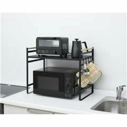組み立てて置いていましたが、配置を変えたのですぐ使用しなくなりました。 色はブラックです。 写真には見本でレンジ等が写っていますが、ラックのみとなります。 ※当方の自宅付近でのお渡しとなります。 ※綺麗だと思いますが、中古ですので神経質な方はご遠慮ください。 ※単品での値下げは考えていませんが、まとめ買いで値下げ可能です。 以下、引用。 ●キッチン収納にピッタリなキッチンラック。 ●高さは3段階で調節が可能。 ●横幅は伸縮式で46〜73cmで調整が可能。 ●サイドには4連フック付で小物もひっかけられます。 □商品仕様 ●棚板耐荷重:10kg ●寸法:W46〜73×H51.5×D35.5cm