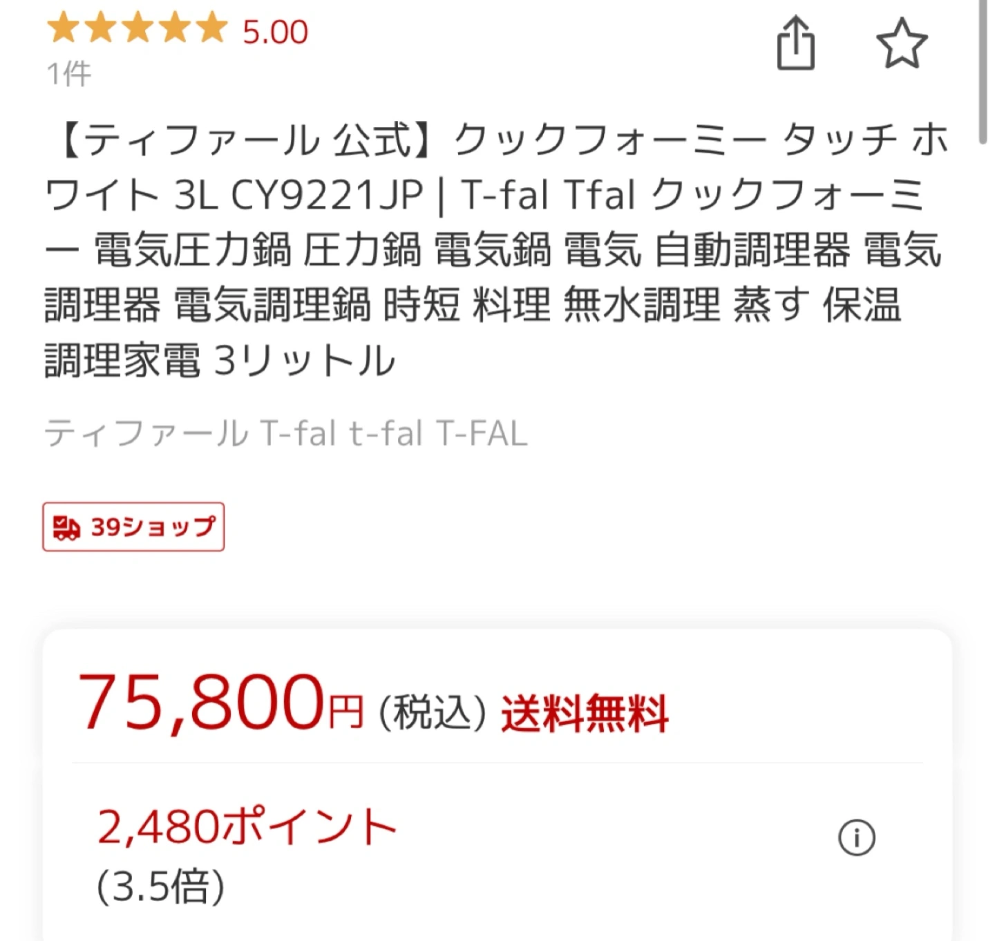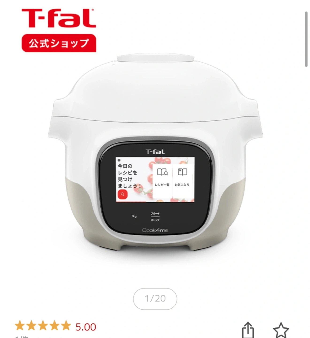 最新モデルのタッチ式クックフォーミーです。 頂きましたが使用しないため、ご入用の方。 一度も開封しておりません。 お仕事されてる方、お料理苦手な方は タッチひとつで料理ができちゃうので とっても楽です。 、 楽天では75800円で売られているので かなりお得に購入頂けると思います。 タッチ1つで、誰でも簡単におまかせ手料理! 【検索から調理まで、画面にタッチするだけ】 ・直観的・簡単操作のタッチパネルで、検索から調理まですべておまかせ。 ・スマートフォンのように画面にタッチするだけ。 ・カラーディスプレイ(4.3インチ)で手順が見やすい。 【多彩なレシピで献立に悩まない】 ・前菜・メインディッシュ・デザートなど、バリエーション豊富な全270種類のレシピを内蔵。 ・食材の旨みを引き出した無水レシピも40種類内蔵。 ・無線LAN(Wi-Fi)接続でティファールアプリと連携すれば、レシピの追加や、お気に入りレシピも反映。 【無線LAN(Wi-Fi)接続でさらに便利に】 ・Wi-Fi接続しティファールアプリと連携すれば、アプリ上のレシピも本体に表示。 ・調理状況がスマホで確認できたり、選んだレシピを本体に送ることが可能。 【朝セットすれば帰宅後に完成】 ・スロークッキングを活用すれば、食材の衛生面に配慮しながら、最大12時間までの調理が可能*なので、出かける前に食材をセットしておけば、帰宅後すぐにアツアツの夕食が食べられます。 ・夜にセットしておけば、朝起きてすぐに温かい味噌汁やスープを食べることもできます。 ※すべての調理手法ではなく、スロークッキングの調理法を活用したレシピのみ。 【他にも使いやすい機能がたくさん】 ・コンパクトなのにパワフルな900W。 ・材料モードで食材の調理も簡単に。 ・毎日使いやすい13種類の調理モード。 ・調理後は自動排気で安心。 ・ステンレスの内蓋でお手入れ簡単。 ・鍋はセラミックコーティング。 ・本体は両サイドのハンドルで持ちやすい。