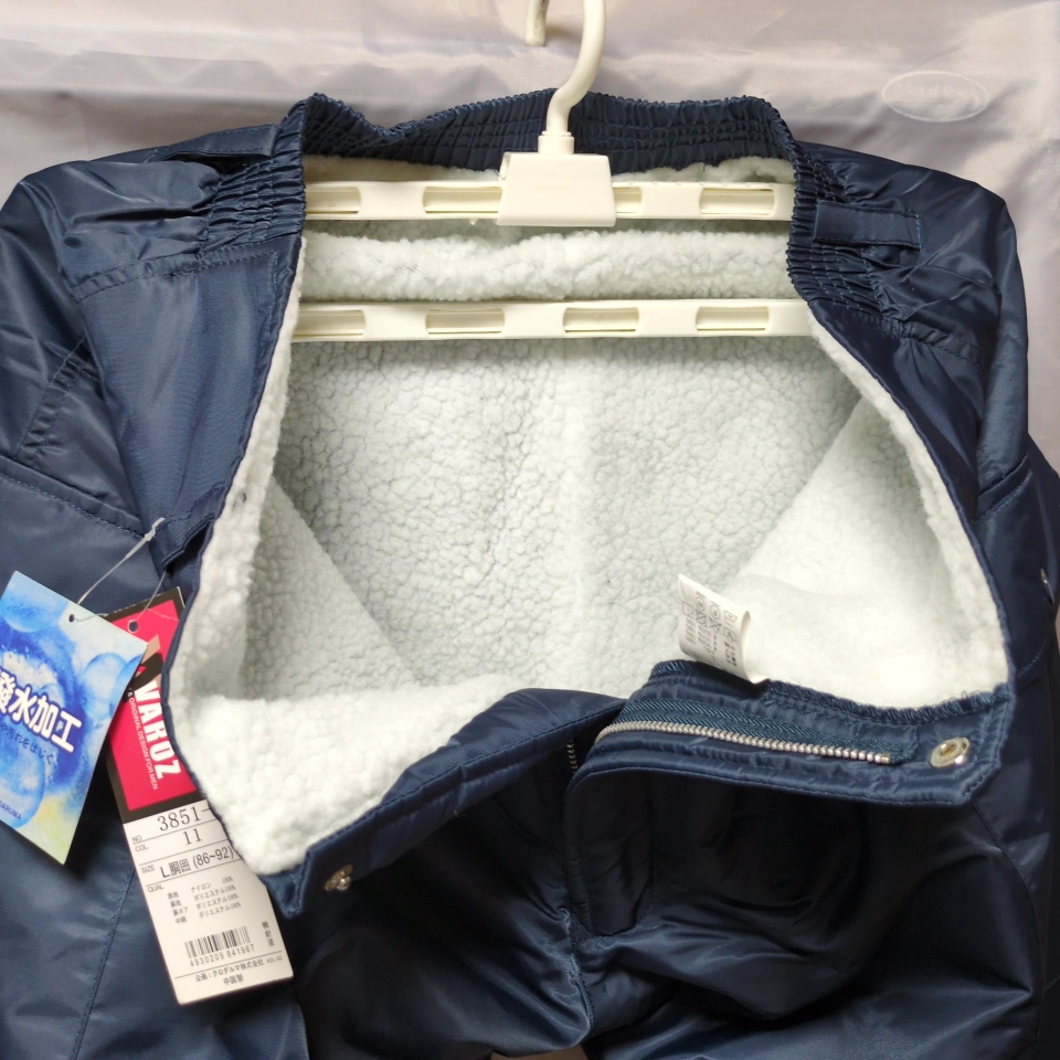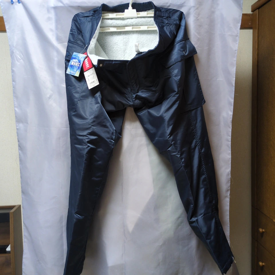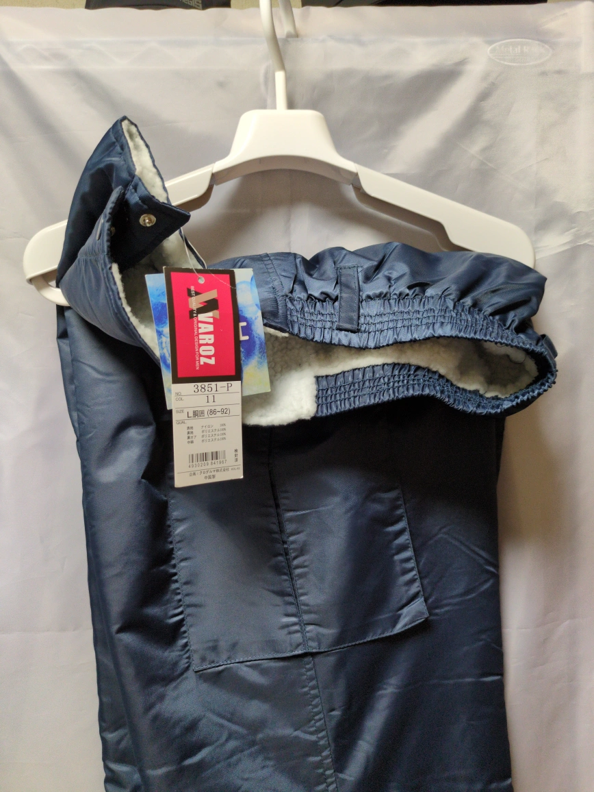 バローズの防寒パンツです。 ・ブランド:バローズ ・サイズ:L(胴囲66-92) ・色:紺色 ・裏地は白色のボア素材 ・裾にジッパーあり ・ポケット付き ☆包装の袋を外して保管 包装の袋はありませんが未使用です。