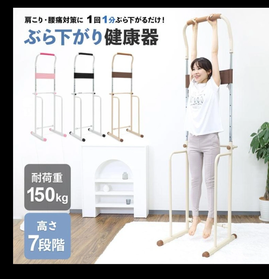 ぶら下がり健康器です ・耐荷重:150kg ・高さ:7段階調整可能 これは背の高い方もOKサイズです 177㎝の人が、少し足を曲げれば使えました。 2年前に買って ほぼ洋服掛けでした 新宿から電車で3分 幡ヶ谷駅から 徒歩5分! コンパクトになり 乗用車のります。 分解すれば電車でいけるかも 中古品であることご了承ください 非対面で、マンションのエントランスに置くので良ければ、24時間 引き取りOKです!