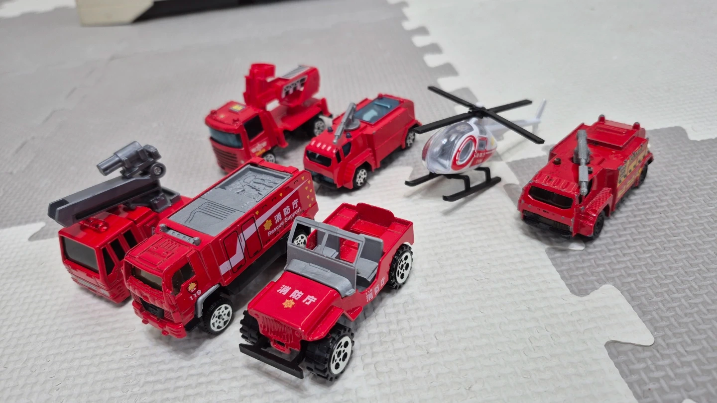 消防車など7台のミニカーです。 プルバック式ではありません。 手前3台は2~3年前にしまむらで購入。 比較的キレイです。 奥の4台はどこで購入したのか不明のものと、雑誌の付録です。 なので4台はおまけだと思ってください。 受け渡し場所や日時についてはプロフィールをご確認ください。 宜しくお願いします。