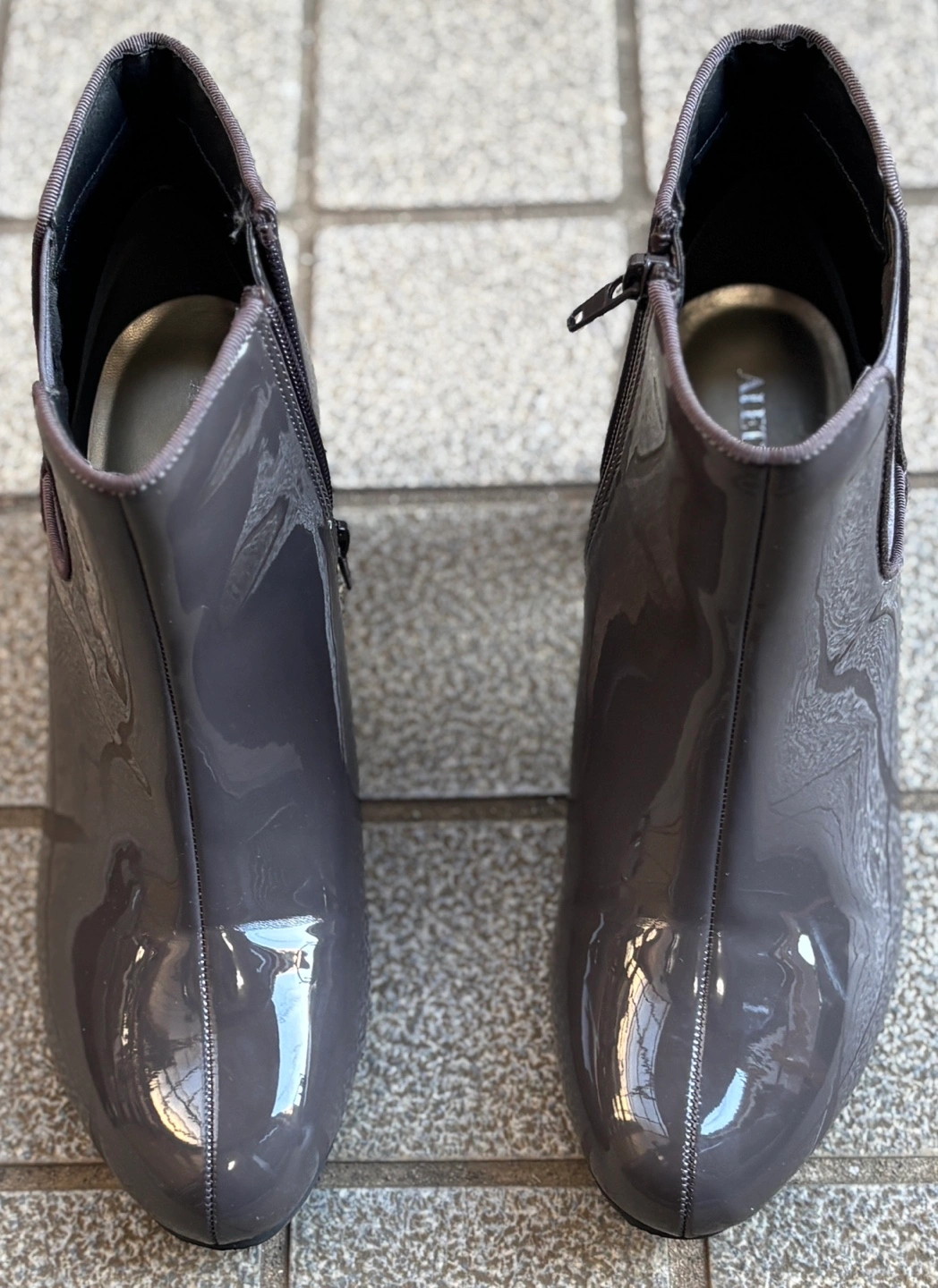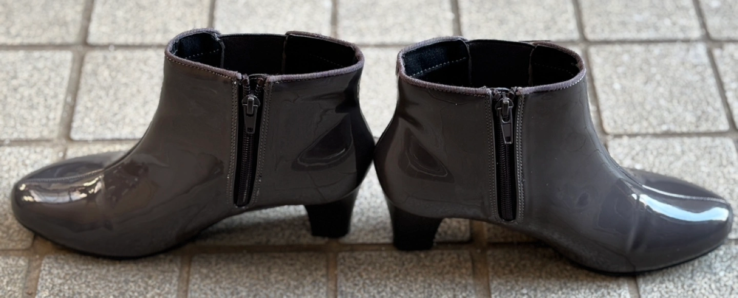 光沢のあるグレーのジッパーブーティ、 中ヒールデザインでスタイリッシュ。 - カラー: グレー - デザイン: ジッパー付き - ヒールの高さ: 中ヒール - 素材: 光沢のある合成皮革 -サイズ: 24.0cmと記載していますが、 少し小さめです。 -状態:中古品/1度履きました。 中古品であることをご了承の上、 ご購入ください。 ご覧いただきありがとうございます。 受け渡しは、平日の18時以降で、お願いします。