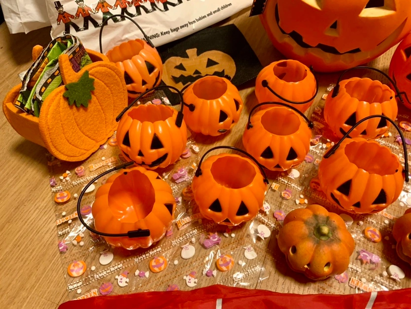 ハロウィン用の仮装衣装とパンプキン置物、ドクロ飾りなど。 ・ママパパ用ドラキュラマント赤、魔女ハットのカチューシャ 男性でも着用可 ・子供用ドラキュラ衣装マント付き 120-140 ・置物パンプキン大   中が光るものですが、電池は付属なし。  動作確認未。 ・パンプキン中1、小9プラスティック ・パンプキン小2陶器 ・パンプキン入れ物 フェルト製 ・ミニバッグ 不織布 ・プラスティックバッグ ハロウィン柄 ・モールオーナメントドクロ柄  #ハロウィン飾り #ハロウィン仮装 #ドクロ飾り #パンプキン置物 #ドラキュラコスチューム 衣装は一度着用。ほぼ新品。 コスプレ種類···魔女・魔法使い コスプレ用品···マント コスプレ用品···コスチューム一式 コスプレ用品···カチューシャ
