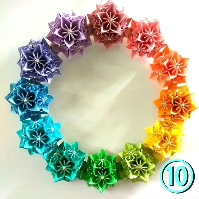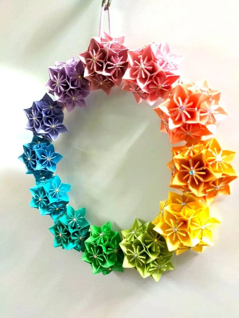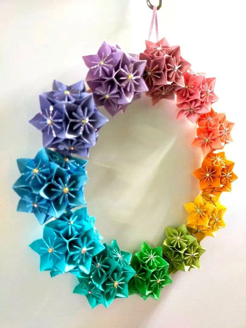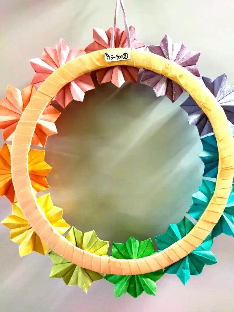 再·再·再販売⑩レインボーフラワーリース 折り紙 リース