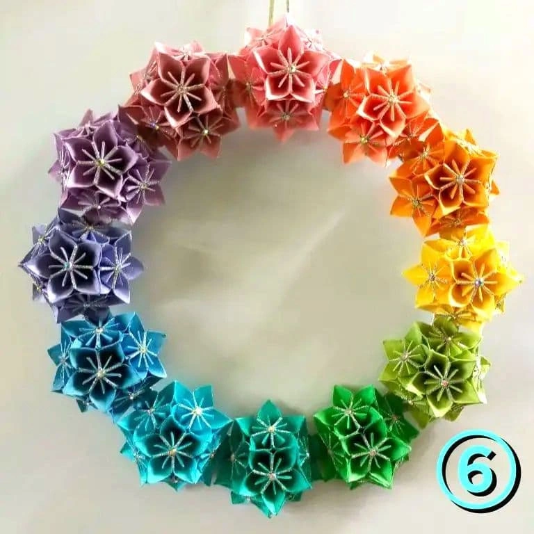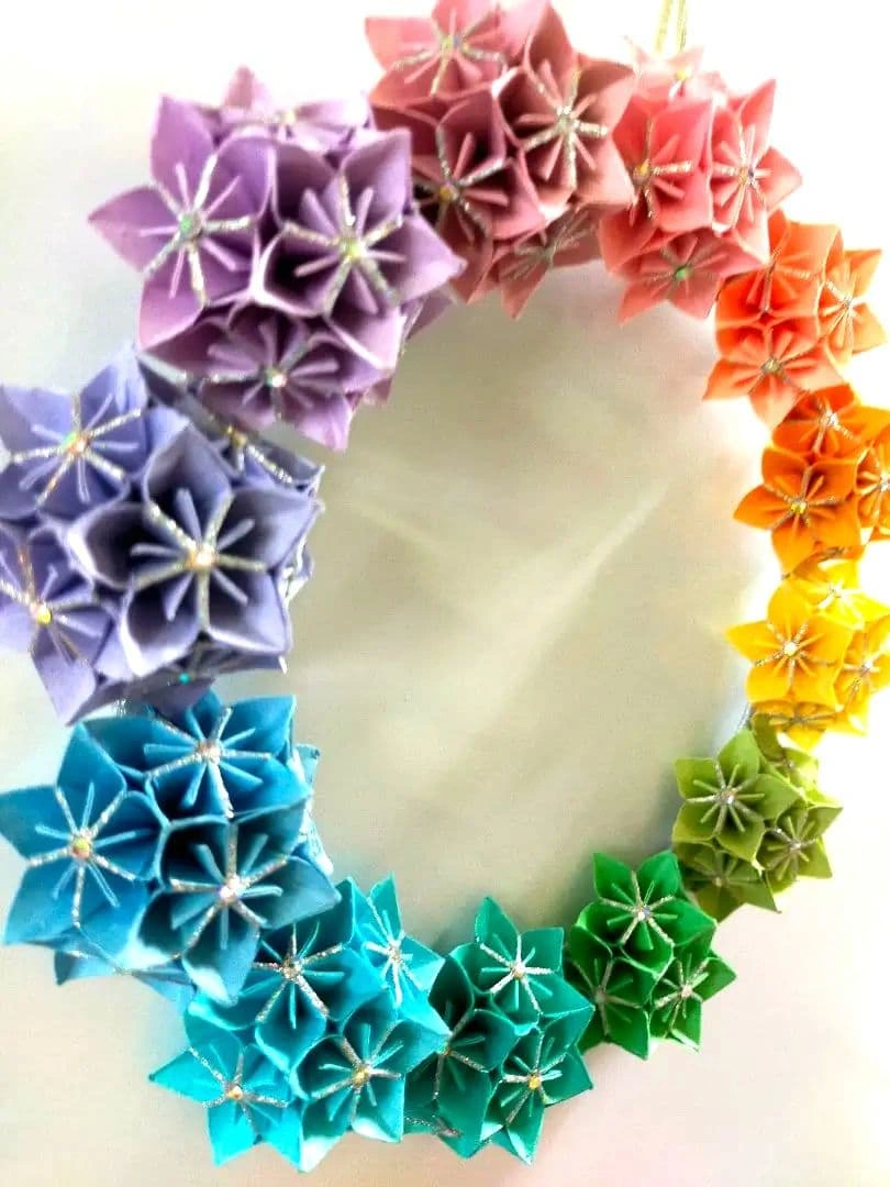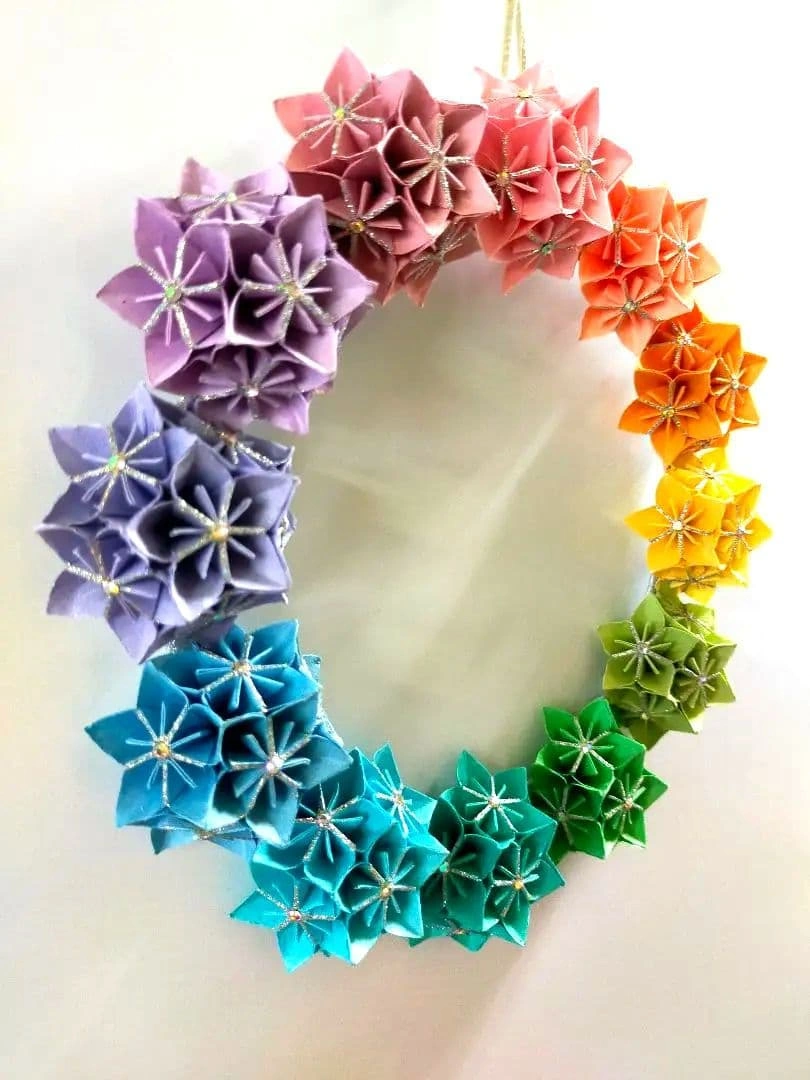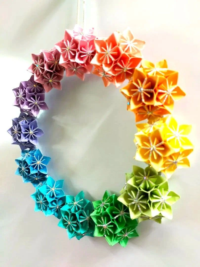 再·再·再販売⑥レインボーフラワーリース 折り紙 リース