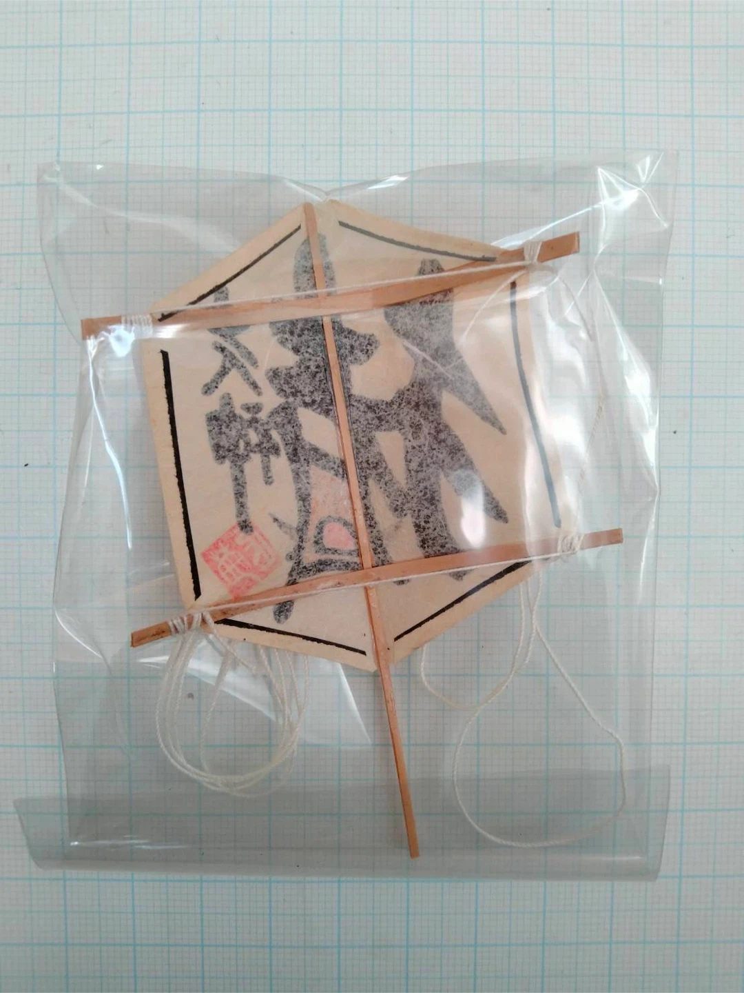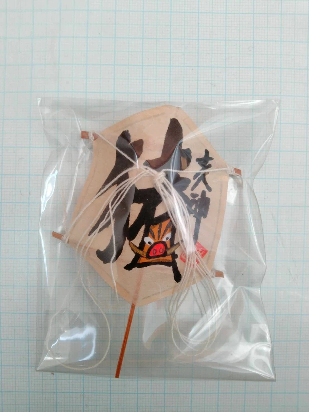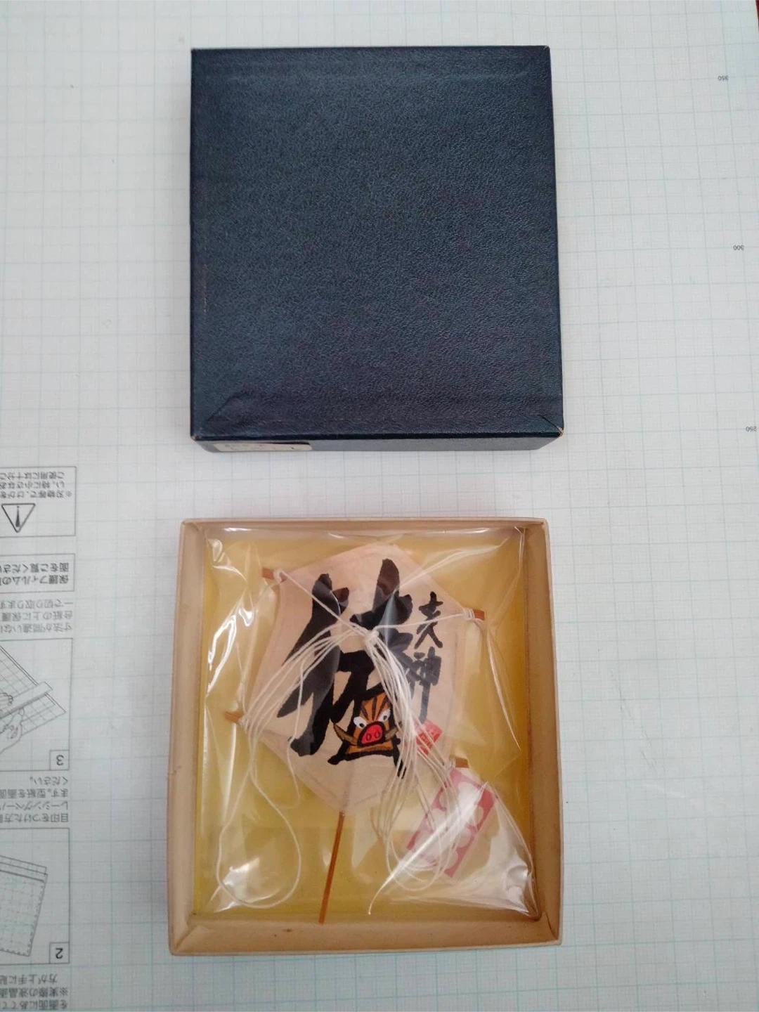 凧 干支凧 1センチマスの方眼紙の上で撮ってます 高さ11センチ 幅7センチ 図柄は漢字の猪です ビニール袋からは出してません未開封 箱経年劣化で箱黄ばんでいます 宜しくお願いします 自宅3階