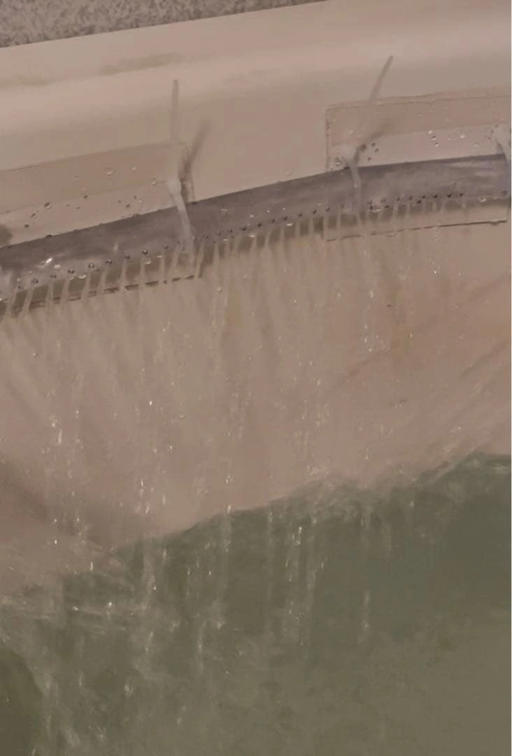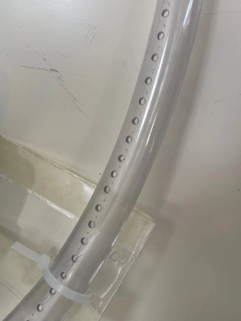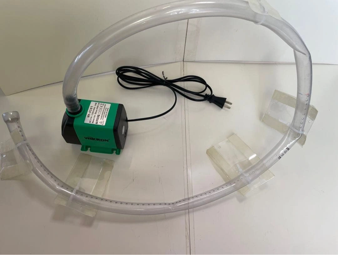 バスルームをリフォームするにあたり、肩に滝のように湯がかかる肩湯や肩楽湯を採用するか迷ったため、効果を確認するために自作したものです。 試したところとても快適なことがわかり、某メーカーの肩湯を採用しました。 このまま実用することも可能です。 透明の薄いプラスチックの板にホースを結束バンドで取り付け、プラスチック板を両面テープで浴槽に貼り付けます。水量は最高毎分50ℓであり、ポンプのバルブで調整することが可能です。 湯量はメーカー製の25ℓ〜45ℓと比べても多いため、温まることができます。 ポンプには吸盤が4箇所取り付けられるので、浴室の垂直面にも固定することができます。 透明のビニールホースに3φの穴を100個程開けたものに、湯船に沈めた水中ポンプから湯を通水します。 水中ポンプには電源スイッチがないので、コンセント抜き差し等 でオンオフをします。 ホースの長さは約110㎝、別に80㎝のホースがつきます。 ホースの長さが足らない場合は繋いでお使いください。 ホースの中には水滴が乾いた跡があります。 材料費+送料-1900円の価格です。 ご希望の方はお気軽にご連絡ください。