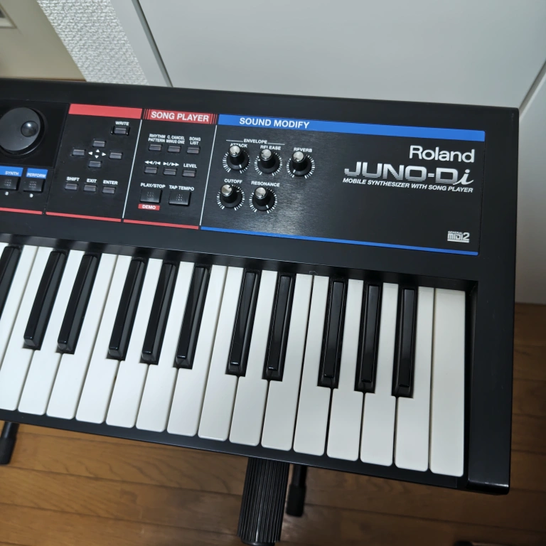 ご覧いただきありがとうございます。 ◆ Roland(ローランド) ◆ シンセサイザー / キーボード ◆ 型番:JUNO-Di ※豪華キーボードスタンドセットです。 【商品状態】 動作確認済みです。 演奏や操作には全く問題なく良好なコンディションです。 使用に伴う多少のキズや汚れは等ありますが、 実用性に問題なし(完動品) ただ、完美品を求める方、神経質な方はご購入をお控えください。 【付属品】 ・電源ケーブル ・キーボードスタンド → セットで届いてすぐに演奏できます。 【特徴】 ・軽量モデルで持ち運びがしやすい ・多彩な内蔵音色でライブ・DTMにも最適 ・初心者〜中級者まで幅広く人気のモデル 【その他】 ご購入後のキャルセルは受け付けておりませんので、よくご確認頂き、お間違えのないようにご購入をお願いします。 また、商品すり替え防止などの為、返品や交換は致しかねますのでご了承下さい。宜しくお願い致します。 質問などありましたらお気軽にどうぞ! 【受け渡し場所】 場所を設定させて頂いておりますが、持ち運びが大変な方はご自宅付近までお持ちすることもできる場合もございますので、お気軽にご相談頂ければと思います。