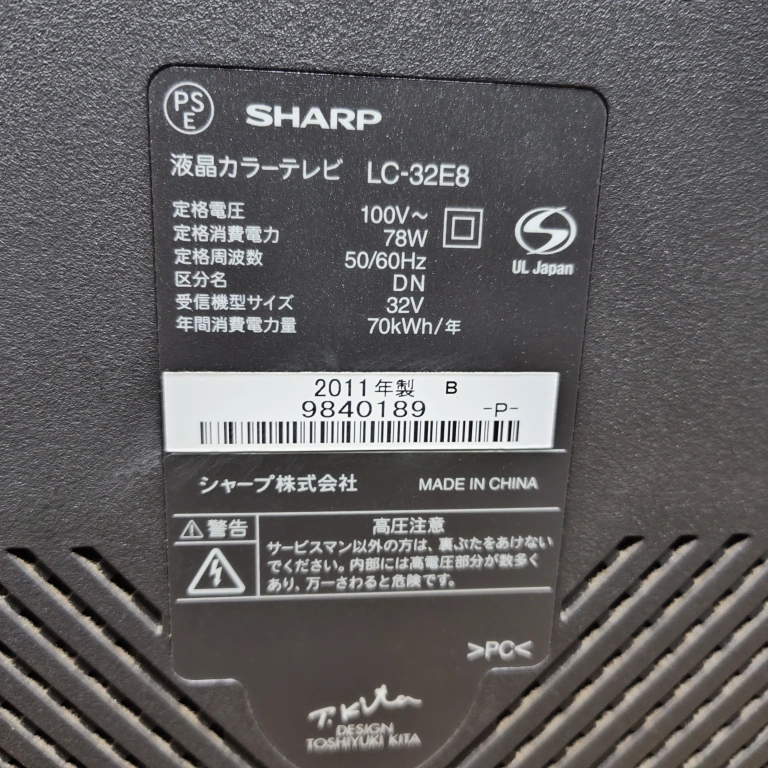 ご覧いただきありがとうございます。 ◆ SHARP シャープ ◆ 液晶テレビ 32型 ◆ 型番:LC-32E8 ◆ 年式:2011年製 ※テレビ画面が首振りして角度が調整可能です 【商品状態】 動作確認済みです。 問題なく使用できます。 使用に伴うキズや汚れは等ありますが、 実用性に問題なし(動作良好) ただ、完美品を求める方、神経質な方はご購入をお控えください。 【付属品】 ・電源ケーブル ・リモコン(電池付き) ・B-CASカード ※届いてすぐにご利用いただけます。 【その他】 ご購入後のキャルセルは受け付けておりませんので、よくご確認頂き、お間違えのないようにご購入をお願いします。 また、商品すり替え防止などの為、返品や交換は致しかねますのでご了承下さい。宜しくお願い致します。 ご質問などありましたらお気軽にコメントください。 【受け渡し場所】 場所を設定させて頂いておりますが、持ち運びが大変な方はご自宅付近までお持ちすることもできる場合もございますので、お気軽にご相談頂ければと思います。