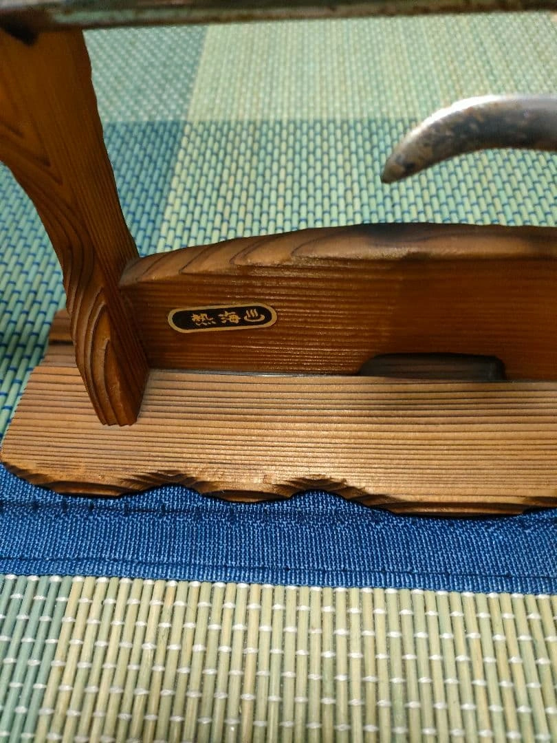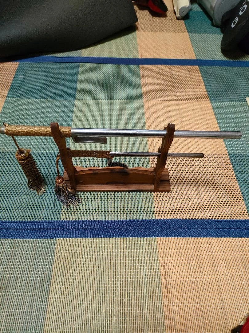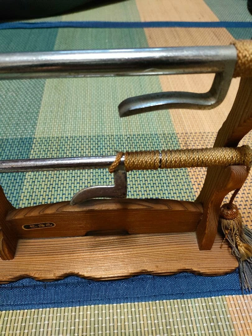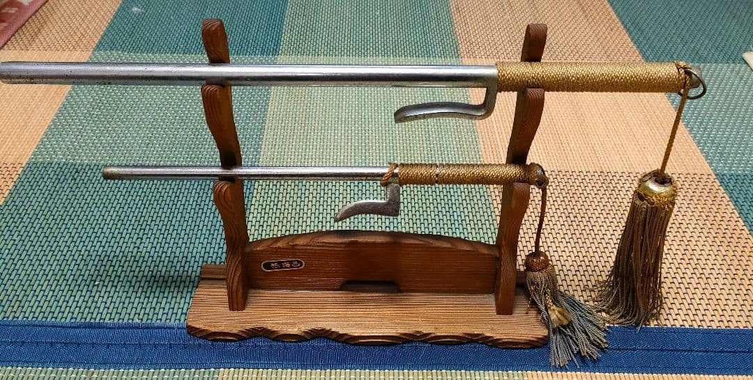 20年以上前に熱海で購入した十手2本と十手掛けのセットです。 経年劣化や錆があります。詳しくは画像をご確認ください。 昭和レトロなグッズとして、インテリアなどにもいかがでしょうか。 【長い方】 約40cm 【短い方】 約27cm ご希望の方はお気軽にご連絡ください。