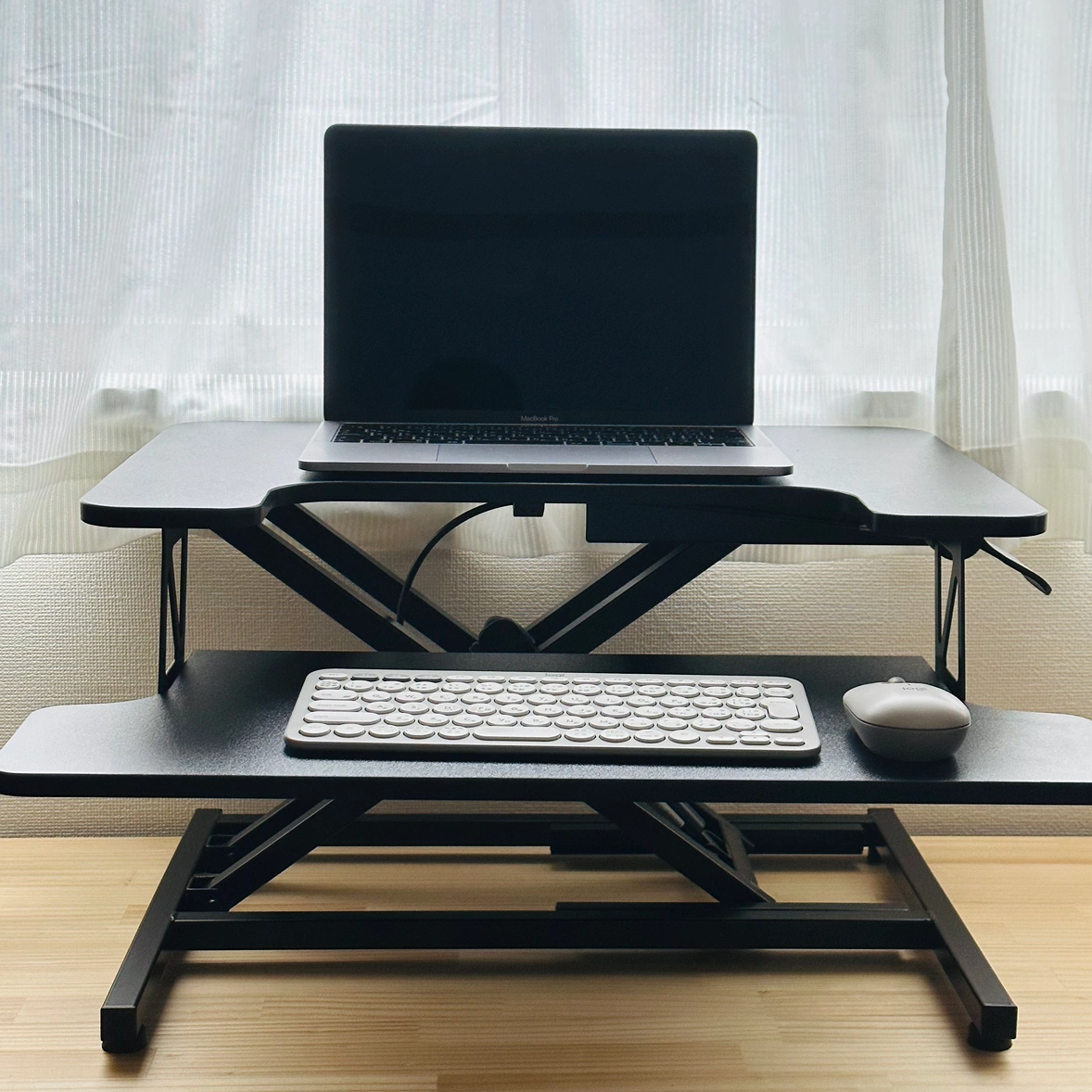 ブランド:ERGOMAKER サイズ ・デスクトップの寸法:55cm x 40cm ・キーボードトレイの寸法:58cm x 27cm ・高さ調整:13cm 〜 39cm ・デスクトップの耐荷重:10kg ・キーボードトレイの耐荷重:2kg ガススプリングの力でスムーズに13cm〜39cmの間で楽に高さを調整し、高さロック機構で自動停止できます。 *写真にあるパソコン、キーボードやマウスは商品に含まれません。