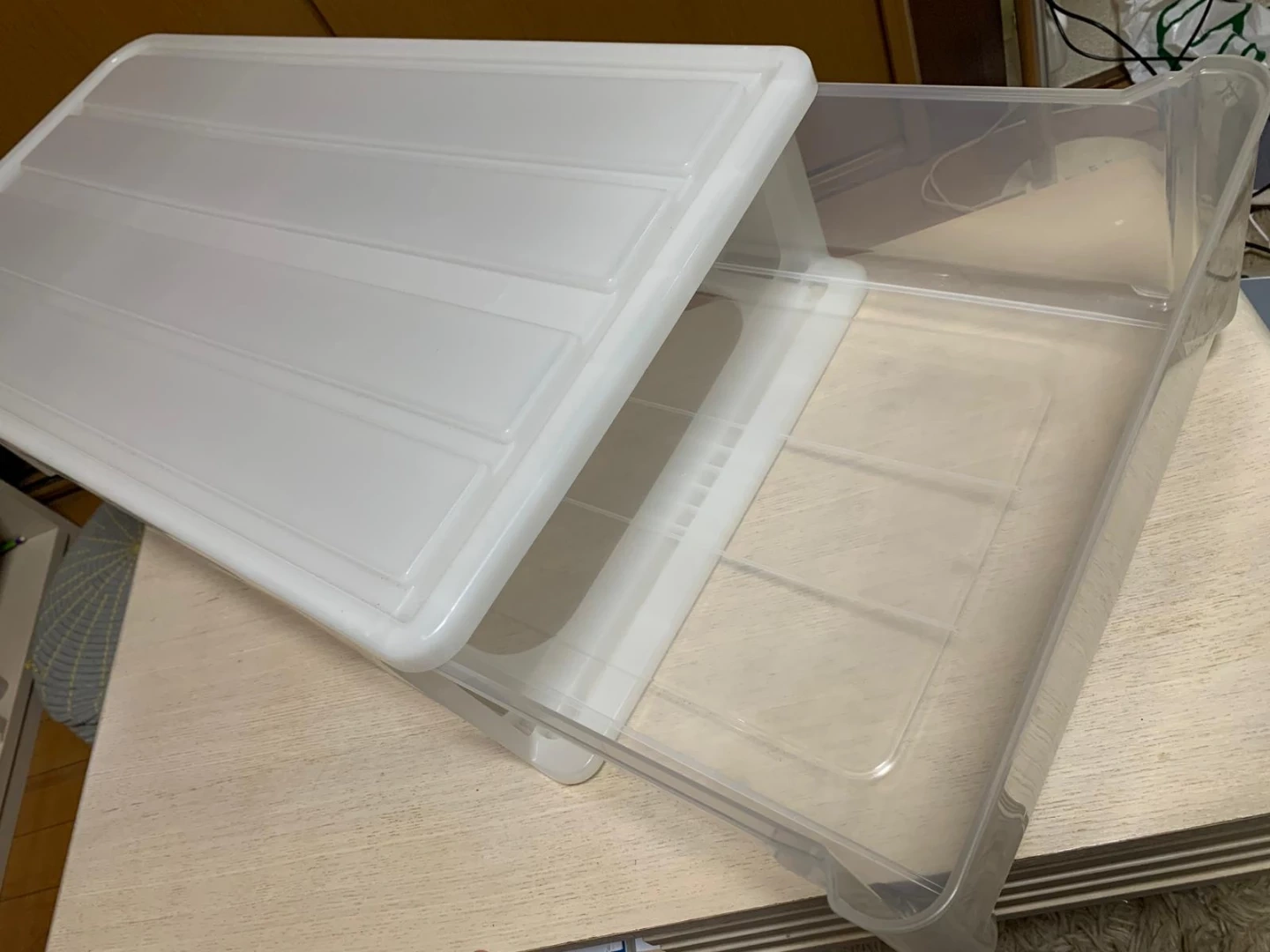 収納ケースです。 ・半透明 ・フタ付き ・使用感あり お気軽にご連絡ください!