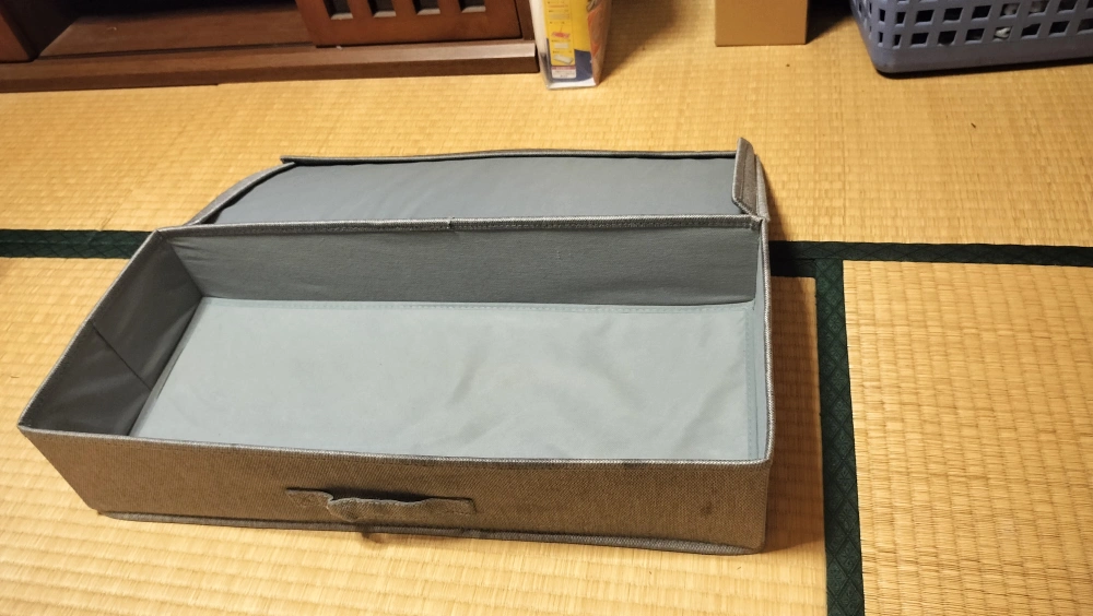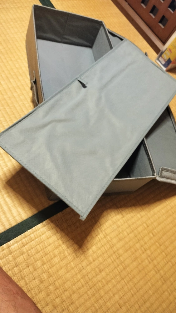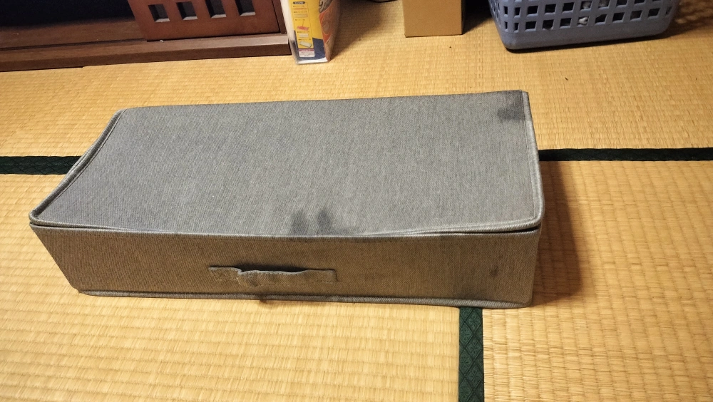 グレーの収納ボックスです 画像では少し黒っぽくなっていますが、濡れた手で触ってしまったからで汚れではありません。 横600縦250高さ120 ベッドの下収納用として使っておりました。ちなみに2個あります。 材質は厚紙っぽい感じがします、表面は布生地を使ってます。 他にもいろいろ出品しておりますので、合わせてご検討下さい😊 ・色:グレー ・状態:使用感少なめ 中古品であることご了承ください
