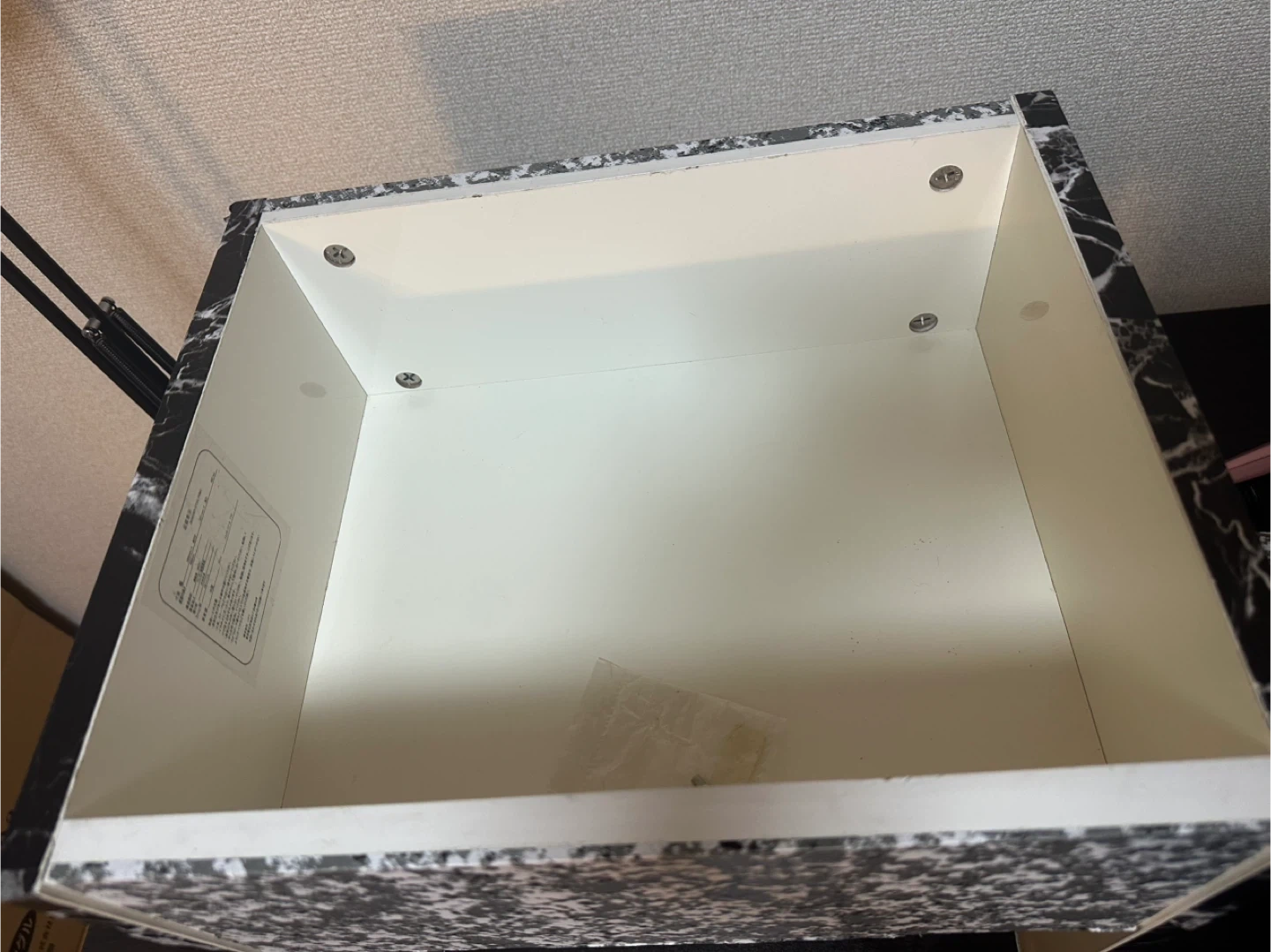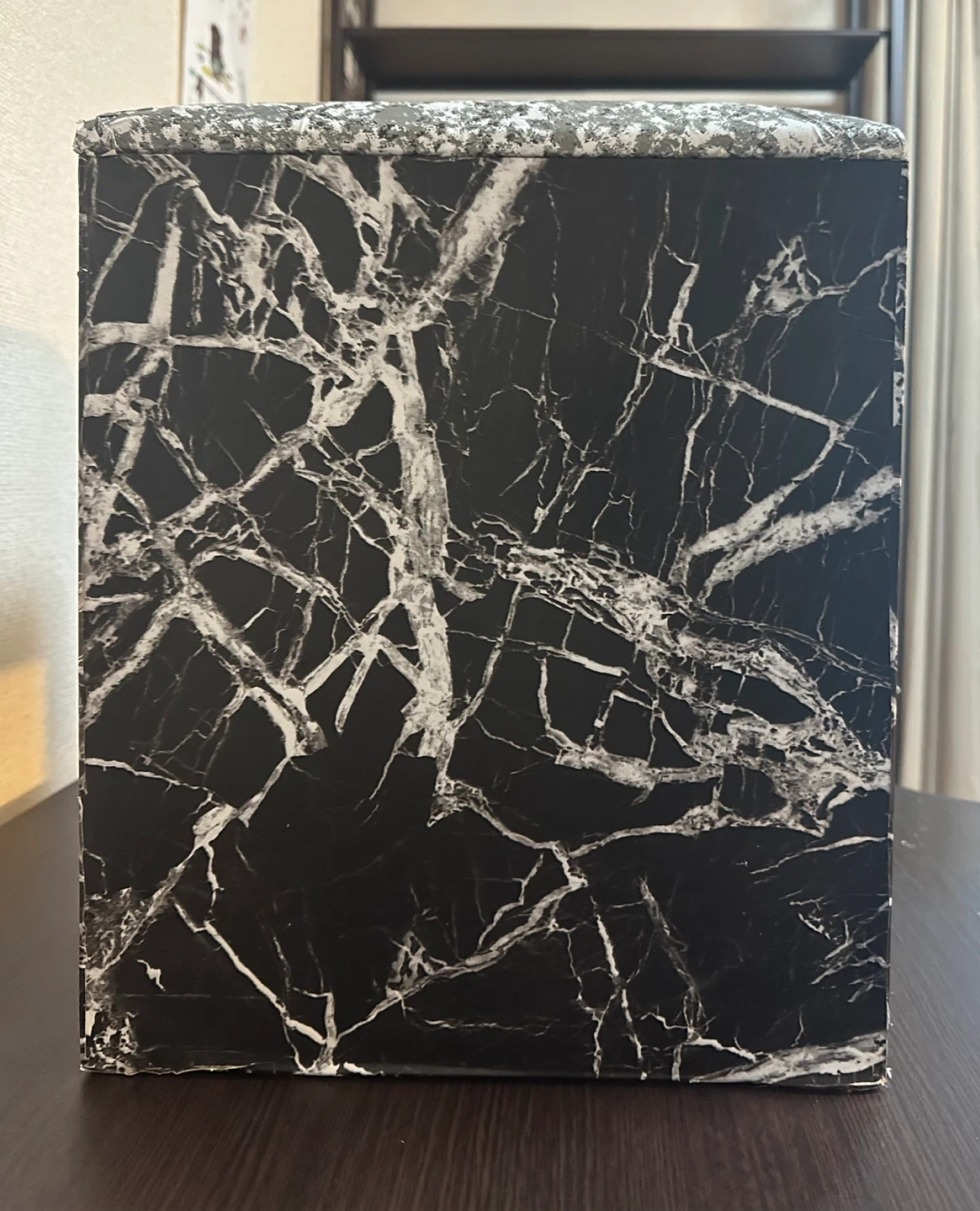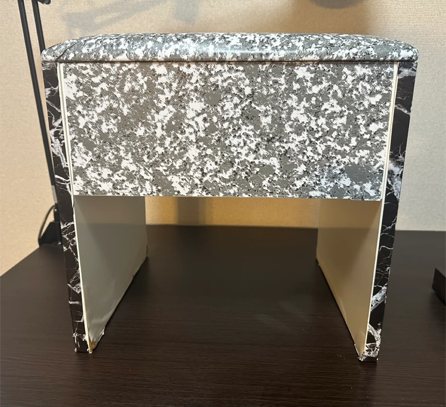 収納付きのスツールをお譲りします。 座ることもでき、内部に収納スペースがあるため実用的です。 サイズ(約): • 高さ:38cm • 横幅:39.5cm • 奥行:12.5cm ※ 手作業での採寸のため、多少の誤差があります。 状態・特徴: • 中古品 • 上部はクッション付きで、座ることができます • 表面は大理石柄のリメイクシート(専用フィルム)を貼っています • 収納部分は白色で、問題なく使用できます • 使用に伴う小さなスレ・使用感あり 玄関・リビング・寝室など、 ちょっとした腰掛けや収納として便利です。