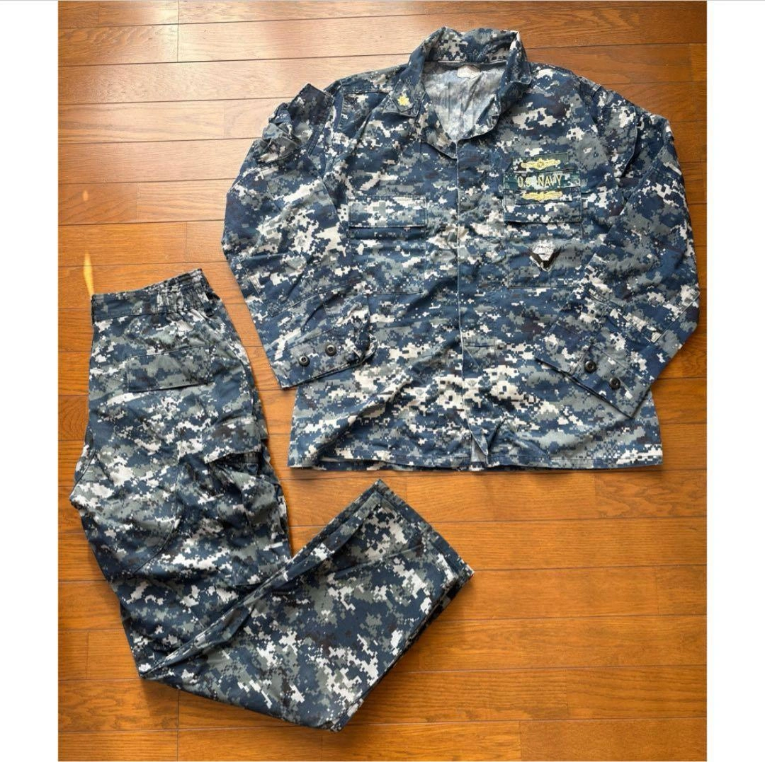 古着 米海軍 NWU ミリタリー ジャケット パンツ 上下 ブルー 海外Mサイズ