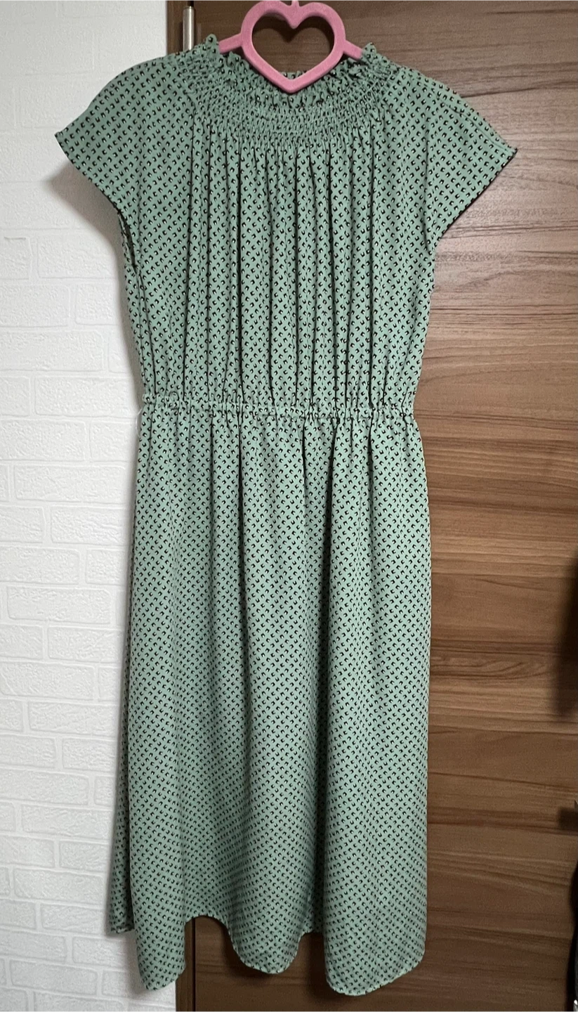 PREFERIR 開襟シャツ 長袖 ロング ワンピース グリーン