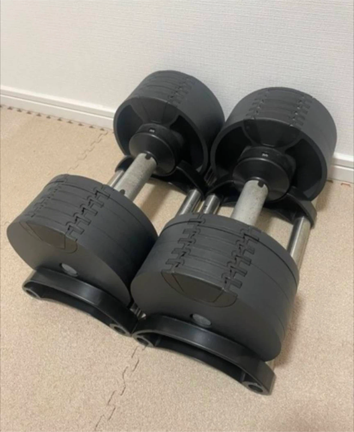 フレックスベル FLEXBELL 可変式ダンベル 20kg NUOBELL NUO-FLEX フレックスベルの可変式ダンベルです。2個セットで、2,4,8,12,16,20kgにすぐに変えられるので、トレーニングの幅が広がりました。大きな傷や汚れはありません。 杉並区付近(千葉、埼玉、神奈川、東京)でしたらお運びいたします。 遠方の方はご遠慮ください。 コメントいただければお運びできるか返信します 最大が20kgのため、初級〜中級者向けです。グリップを回しすだけで重量が変わるのでストレスなくトレーニングできます。 【こんな方におすすめ】 ・ジムに行く時間がない。 ・隙間時間にトレーニングしたい。 ・ダンベルが欲しいけど収納場所に困る。 ・もっと手軽にハードウェイトトレーニングしたい。 ・シェイプアップしたい。 ・健康的な体を手に入れたい。