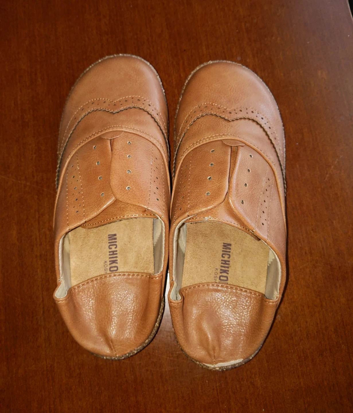 🔴再度お値下げしました!!! ♥SALE♥ 🟢コンビニには⬅サンダルとして、お出かけには、ちゃんとかかとをしまう靴に変身💕 2ウェイです。ご検討下さい。 ・カラー:明るい茶色 ・デザイン:ウィングチップ ・MIC HIKO LONDON KOSHINO 『シューズ』かかと踏み潰しおk(2種類の履き方)ができます➡2WAY カラー:キャメル サイズ:L(24センチ)3E 新品(箱付) 🟣合皮のシューズ