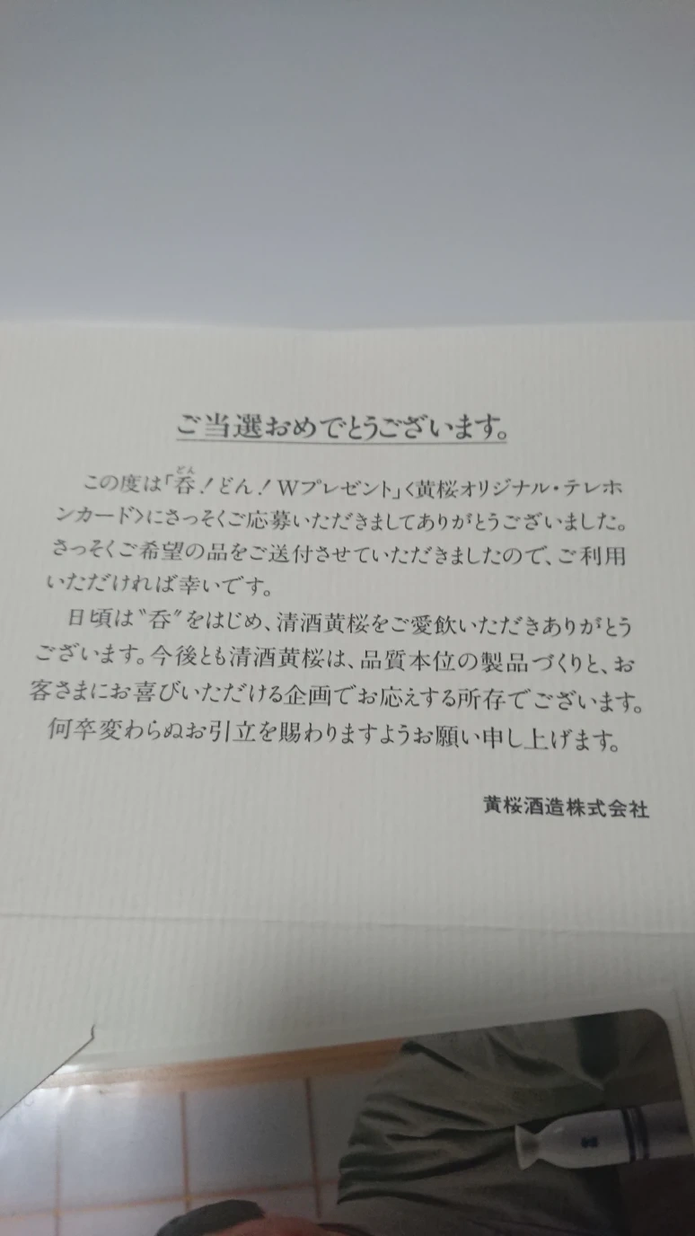 ご覧頂き有難うございます。吉幾三黄桜の懸賞で当選した貴重なテレホンカード