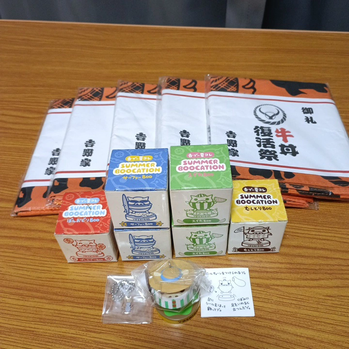 吉野家の牛丼祭り関連グッズです。 【内容】 ・復活祭 手ぬぐい 5枚 ・吉野家の吉ブー人形 箱のサイズは一辺35mmです。 4種類(7個)の出品です。 写真撮影の為、 むしとりブーのみ開封しておりましたが、 他は未開封です。 非売品で、昔の物です。 コレクションにいかがですか? バラ売り可能です。 吉ブー人形:1つ 300円 手ぬぐい:1枚 500円
