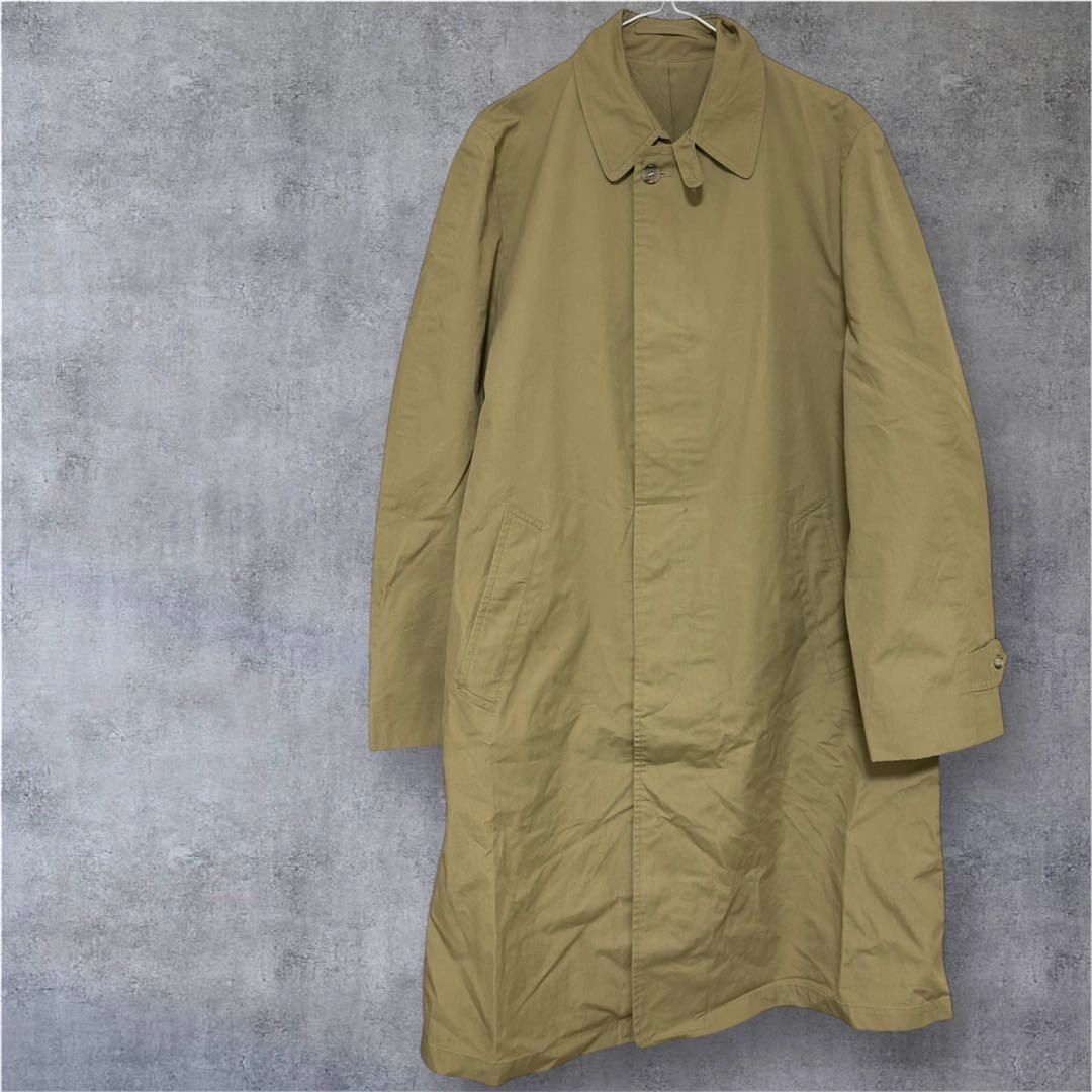 ご覧いただきありがとうございます。 コートの代名詞的存在、London Fog(ロンドンフォグ)のヴィンテージ ステンカラーコート(バルマカーンコート)です。 バーバリーやアクアスキュータムと並び、古着好きやファッショニスタか ら絶大な支持を得ている名門ブランドの一着です。 ★希少な「LONG」丈が生む美シルエット サイズ表記は「38 LONG」。 通常のレギュラー丈とは違い、膝下までしっかりと覆うロング丈が、歩くたびに美しいドレープ(揺れ感)を生み出します。 ★高機能素材「CALIBRE CLOTH」 ロンドンフォグ独自の混紡素材を使用しており、耐久性と耐水性に優れています。 カラーは一番人気のベージュ(カーキ)。どんな色合わせにも困りません。 【サイズ】 表記:38 LONG(メンズL相当) ※身長170cm〜180cmくらいの方が、雰囲気よく着られるゴールデンサイズです。 • 肩幅:約 47cm • 身幅:約 58cm(脇下) • 着丈:約 115cm(襟下から裾まで) • 袖丈:約 66cm ※画像のタグと実寸推計値です。お手持ちのコートと比較してください。 【状態】 ヴィンテージ品ですが、目立つ汚れやダメージはなく、生地のハリもしっかり残っています。 ※古着にご理解のある方のみご購入ください。 ご希望の方はお気軽にご連絡ください。