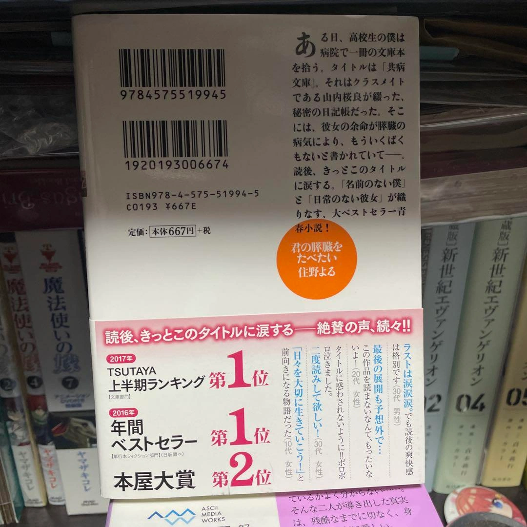 感動的なストーリーが展開される小説。 - タイトル: 君の膵臓をたべたい - ISBN: 9784757551994 - 出版年: 2017年 - ランキング: TSUTAYA上半期ランキング第1位 - 受賞歴: 年間ベストセラー第1位 ご覧いただきありがとうございます。 ご希望の方はお気軽にご連絡ください。